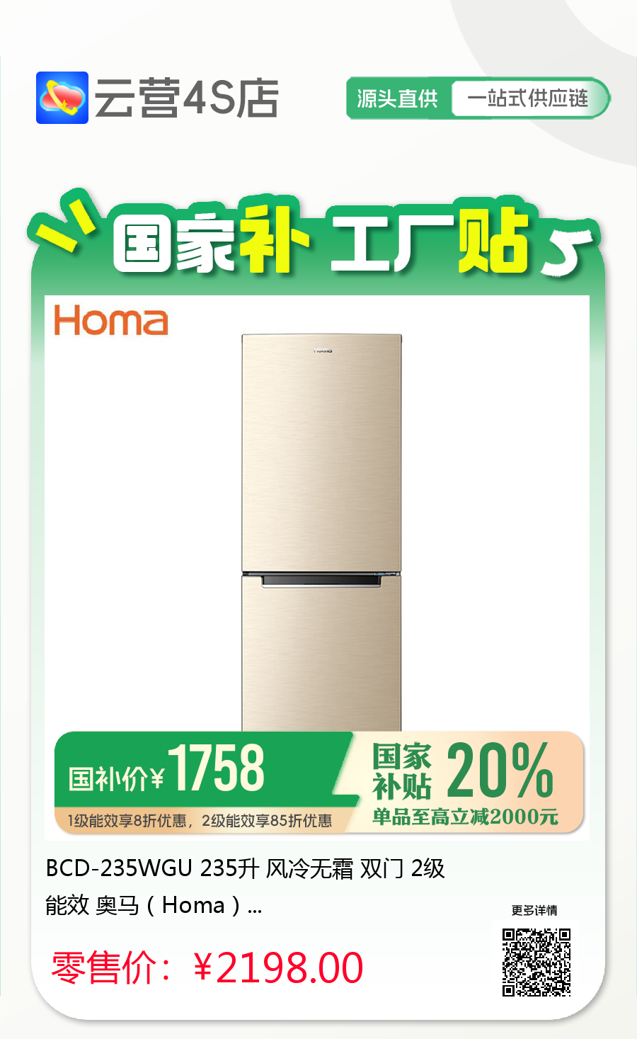 奥马冰箱~「云营4S店❃无界直营」