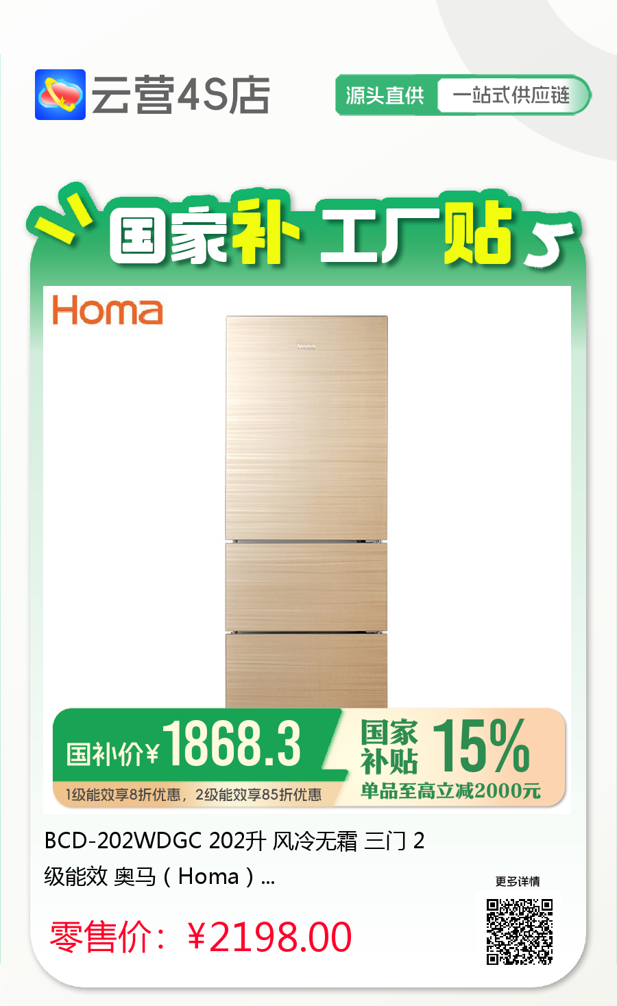 奥马冰箱~「云营4S店❃无界直营」