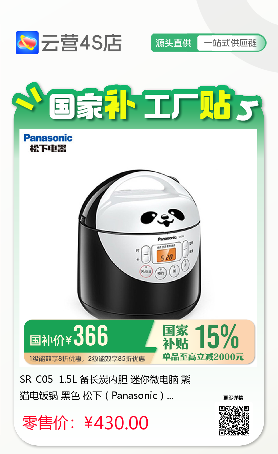 SR-C05 1.5L 备长炭内胆 迷你微电脑 熊猫电饭锅 黑色 松下(Panasonic)