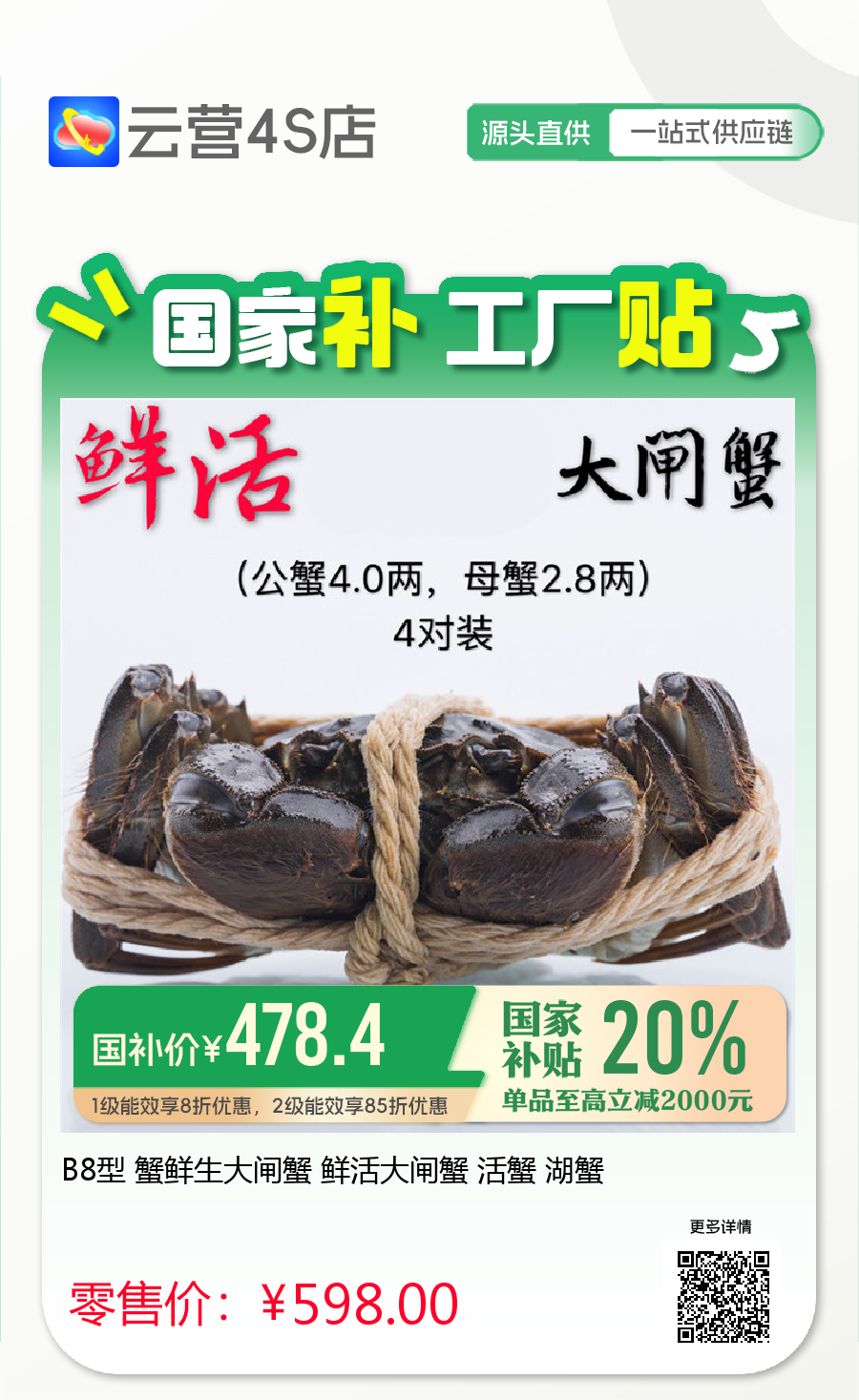 B8型 蟹鲜生大闸蟹 鲜活大闸蟹 活蟹 湖蟹