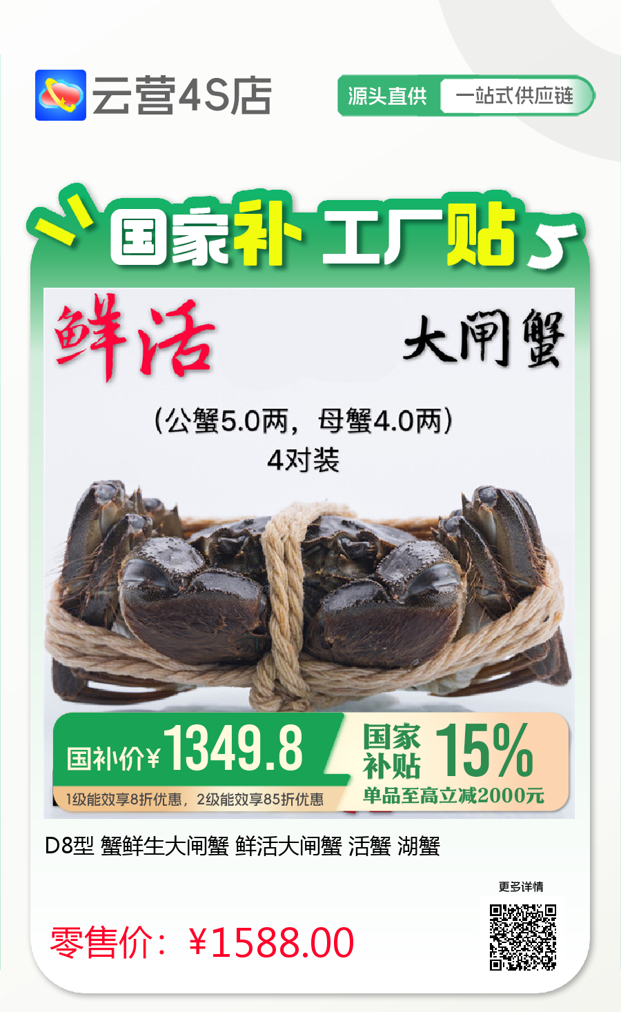 D8型 蟹鲜生大闸蟹 鲜活大闸蟹 活蟹 湖蟹