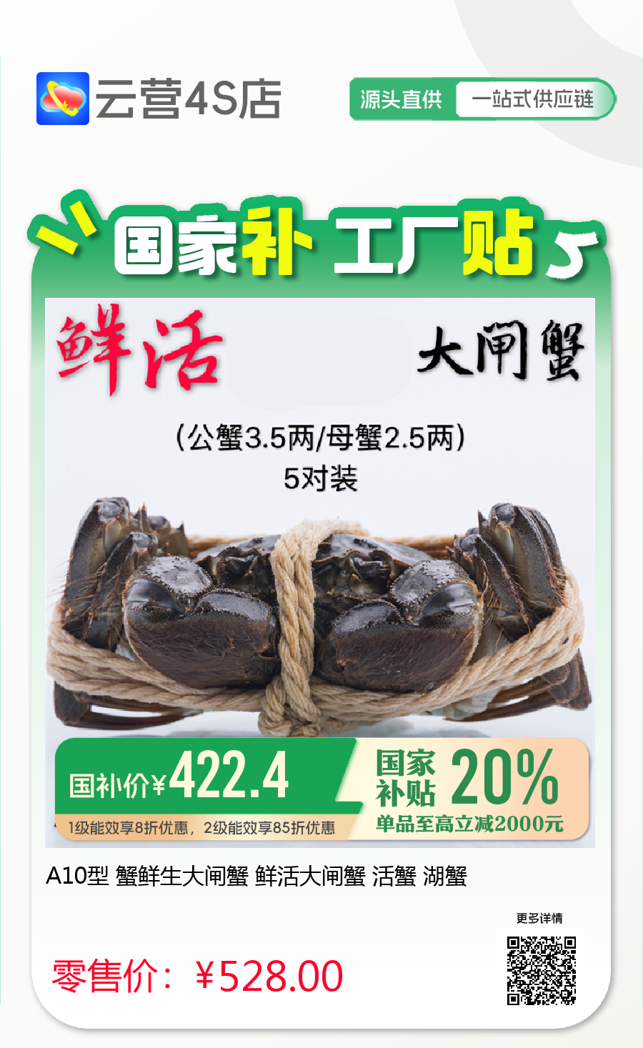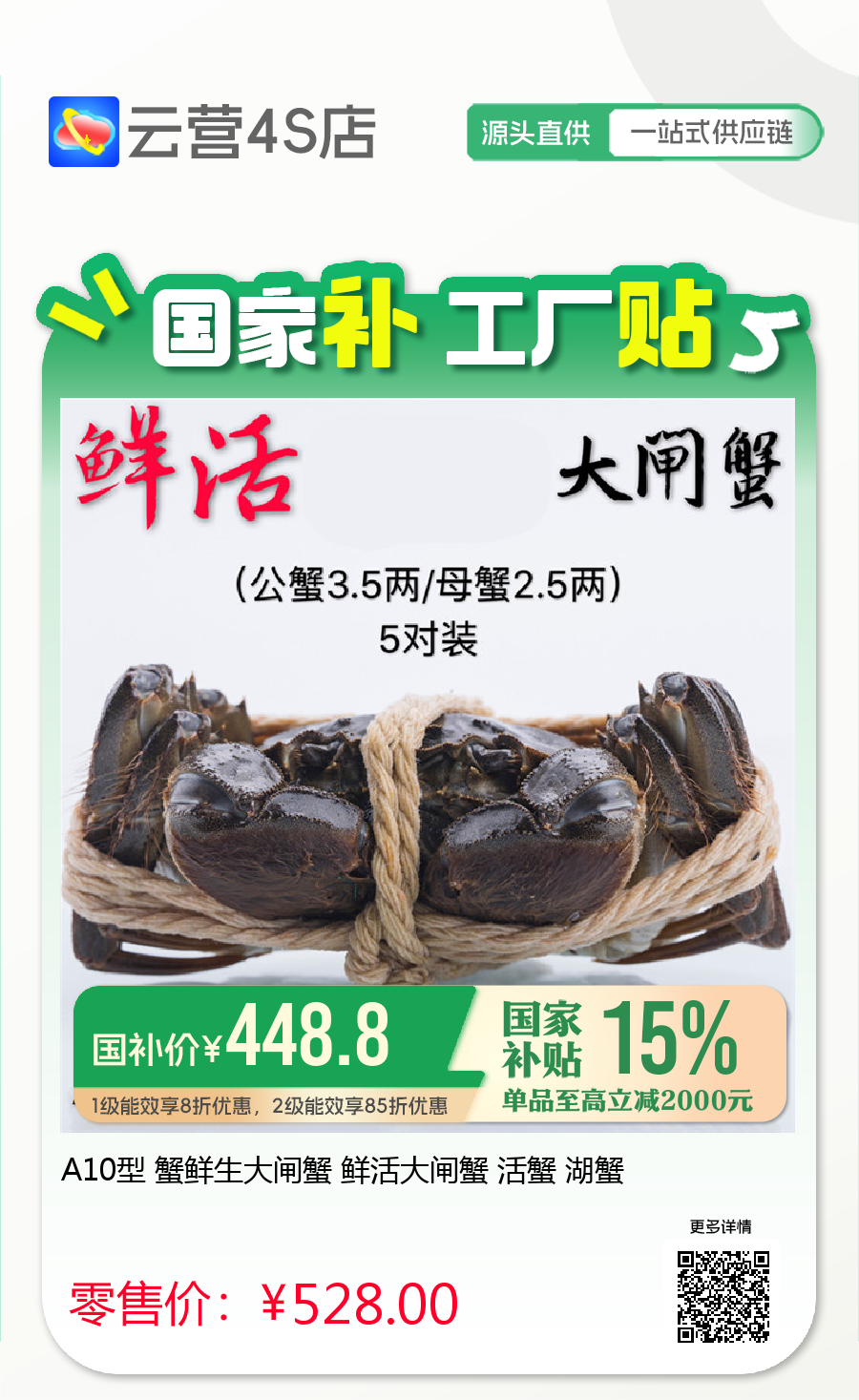 A10型 蟹鲜生大闸蟹 鲜活大闸蟹 活蟹 湖蟹