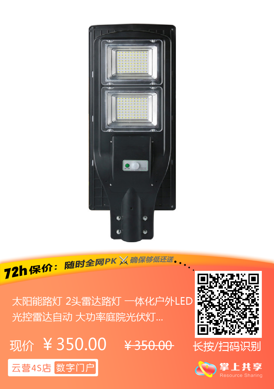 太阳能路灯 2头雷达路灯 一体化户外LED 光控雷达自动 大功率庭院光伏灯