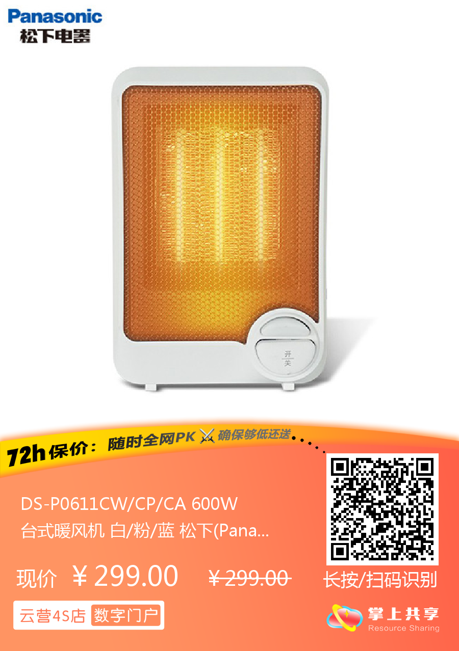 DS-P0611CW/CP/CA 600W 台式暖风机 白/粉/蓝 松下(Panasonic)