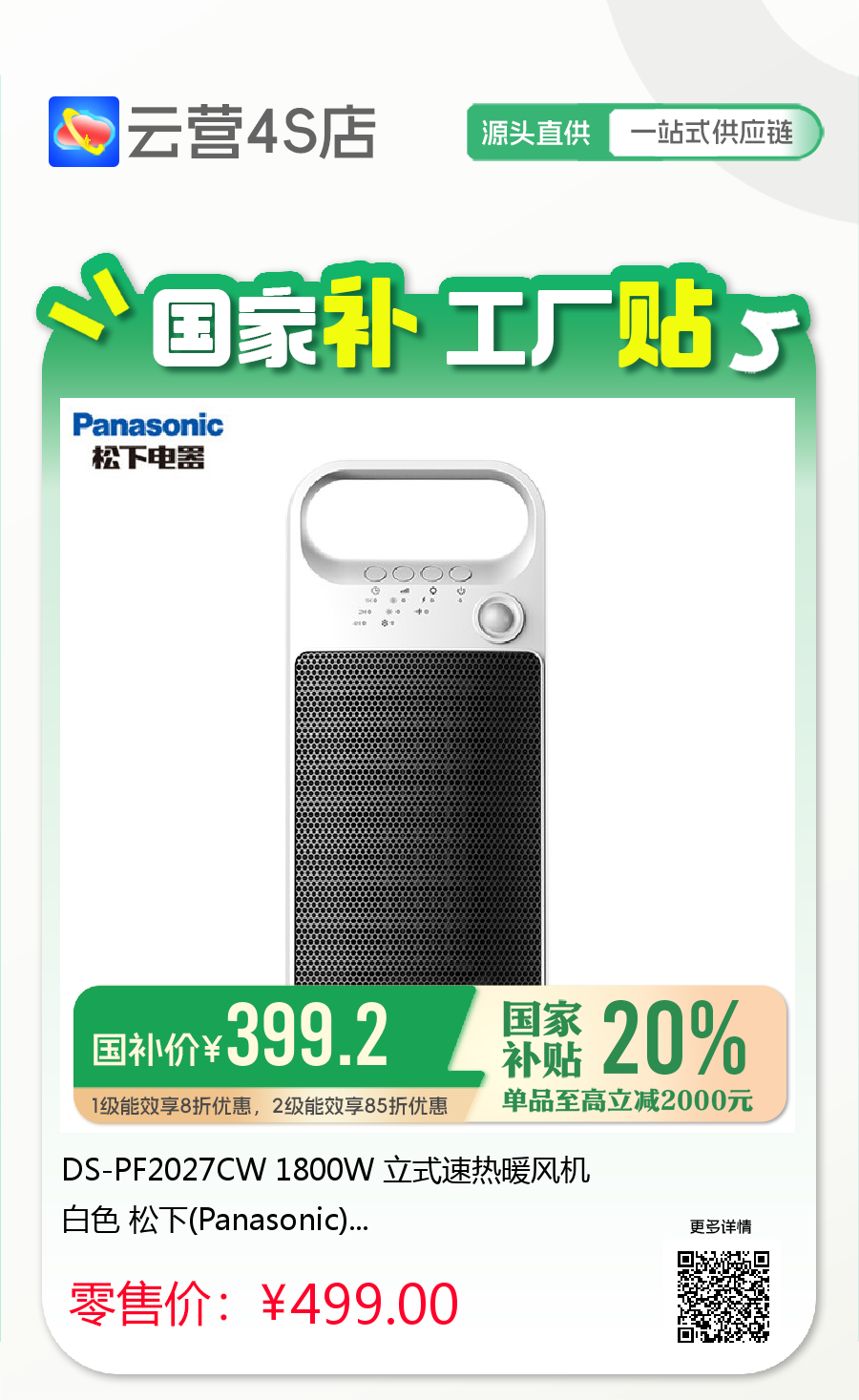 DS-PF2027CW 1800W 立式速热暖风机 白色 松下(Panasonic)