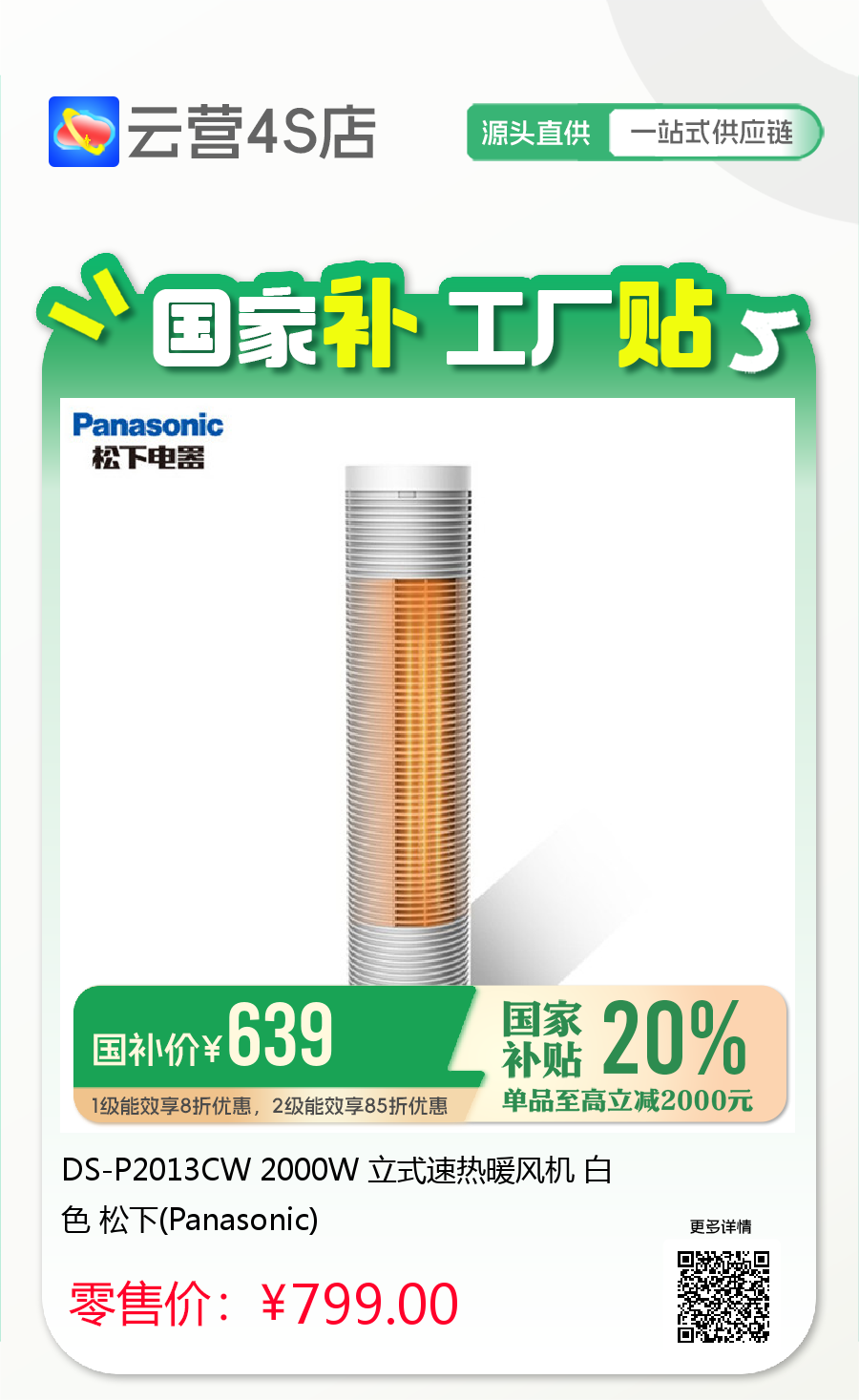 DS-P2013CW 2000W 立式速热暖风机 白色 松下(Panasonic)