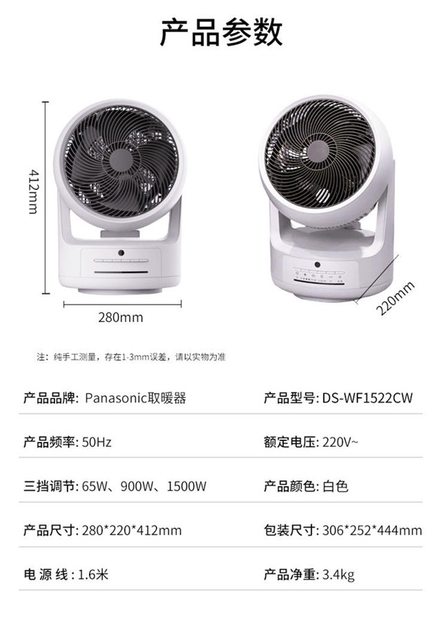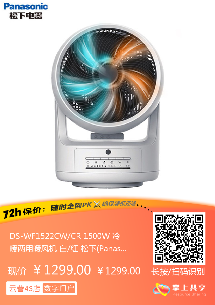 DS-WF1522CW/CR 1500W 冷暖两用暖风机 白/红 松下(Panasonic)