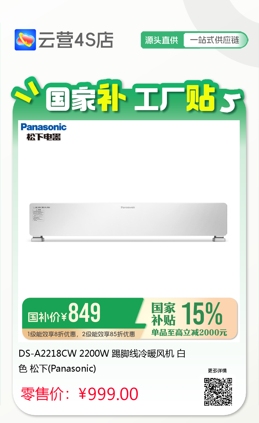 DS-A2218CW 2200W 踢脚线冷暖风机 白色 松下(Panasonic)