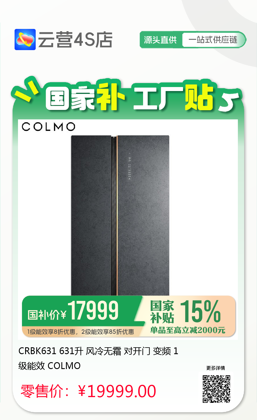 CRBK631 631升 风冷无霜 对开门 变频 1级能效 COLMO