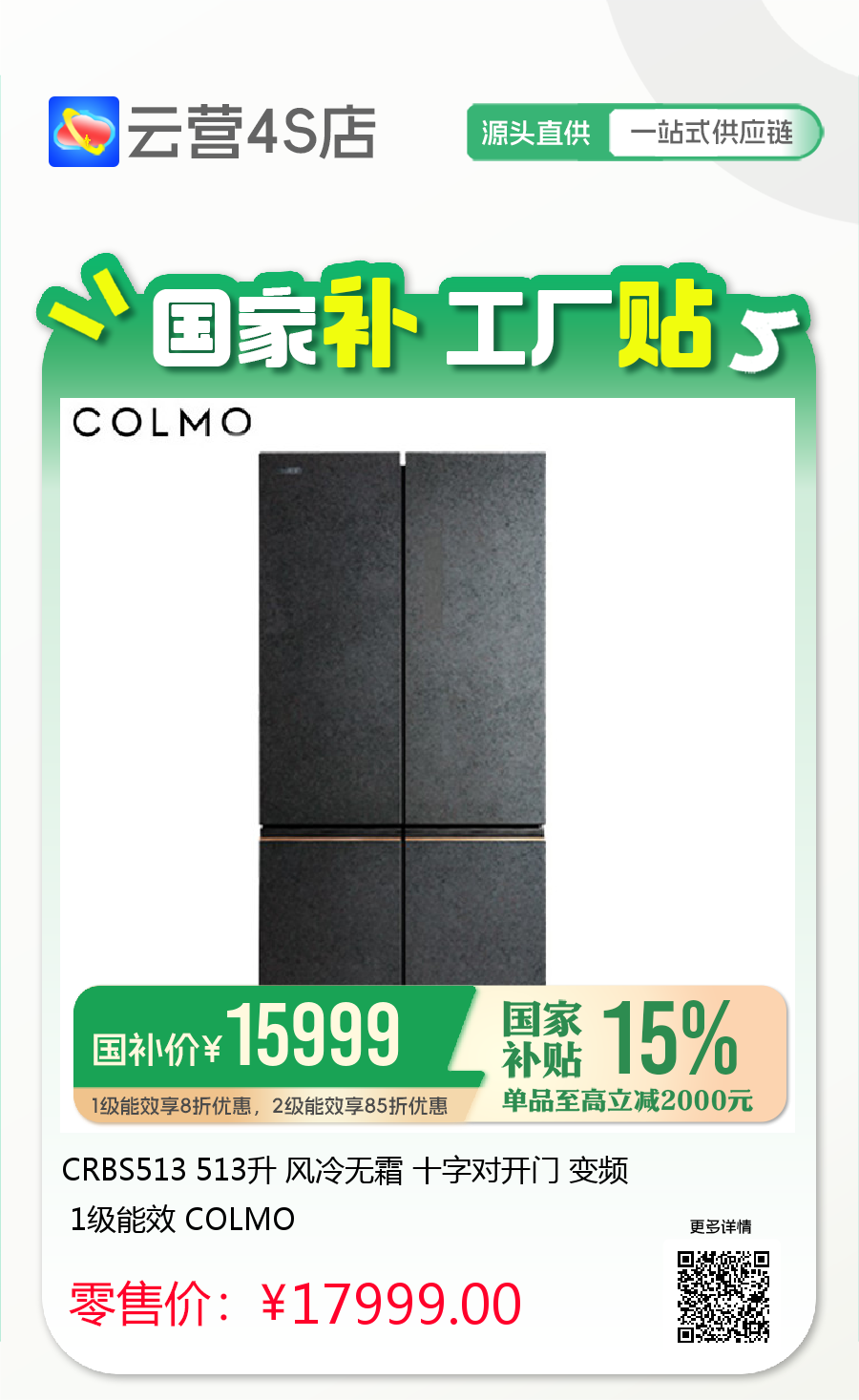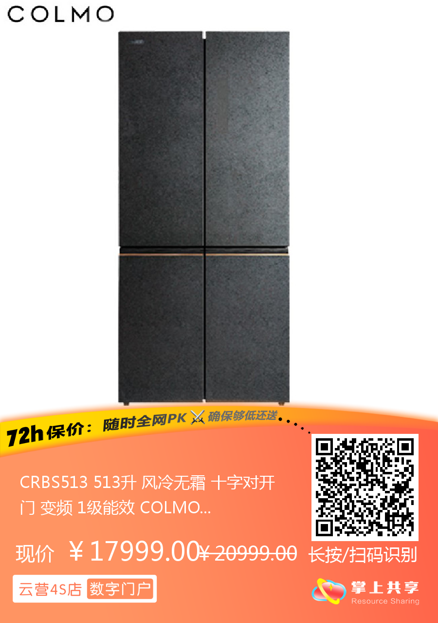 CRBS513 513升 风冷无霜 十字对开门 变频 1级能效 COLMO