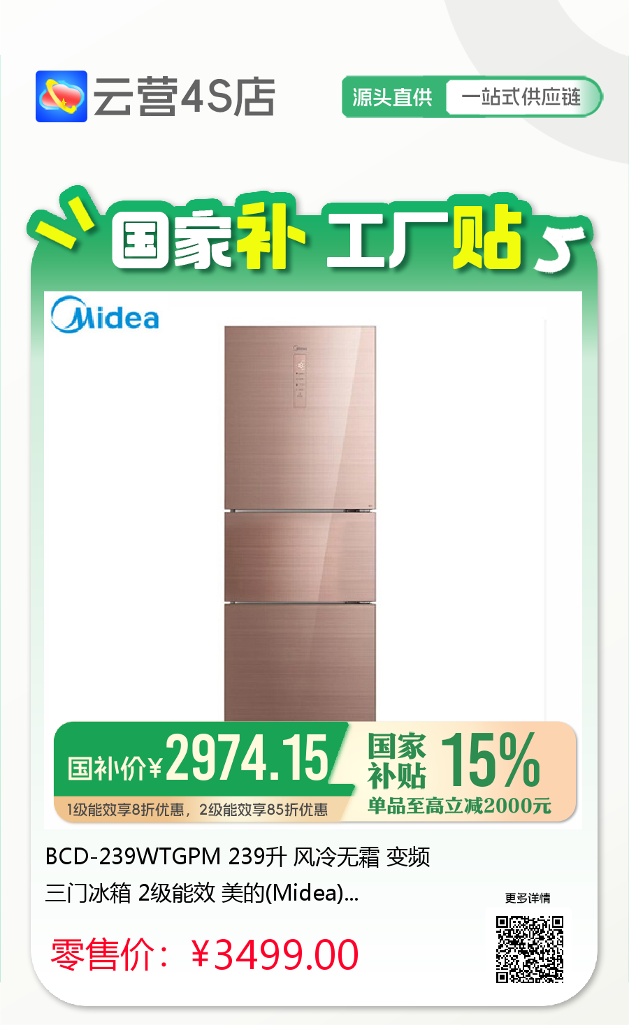 美的冰箱~「云营4S店❃无界直营」