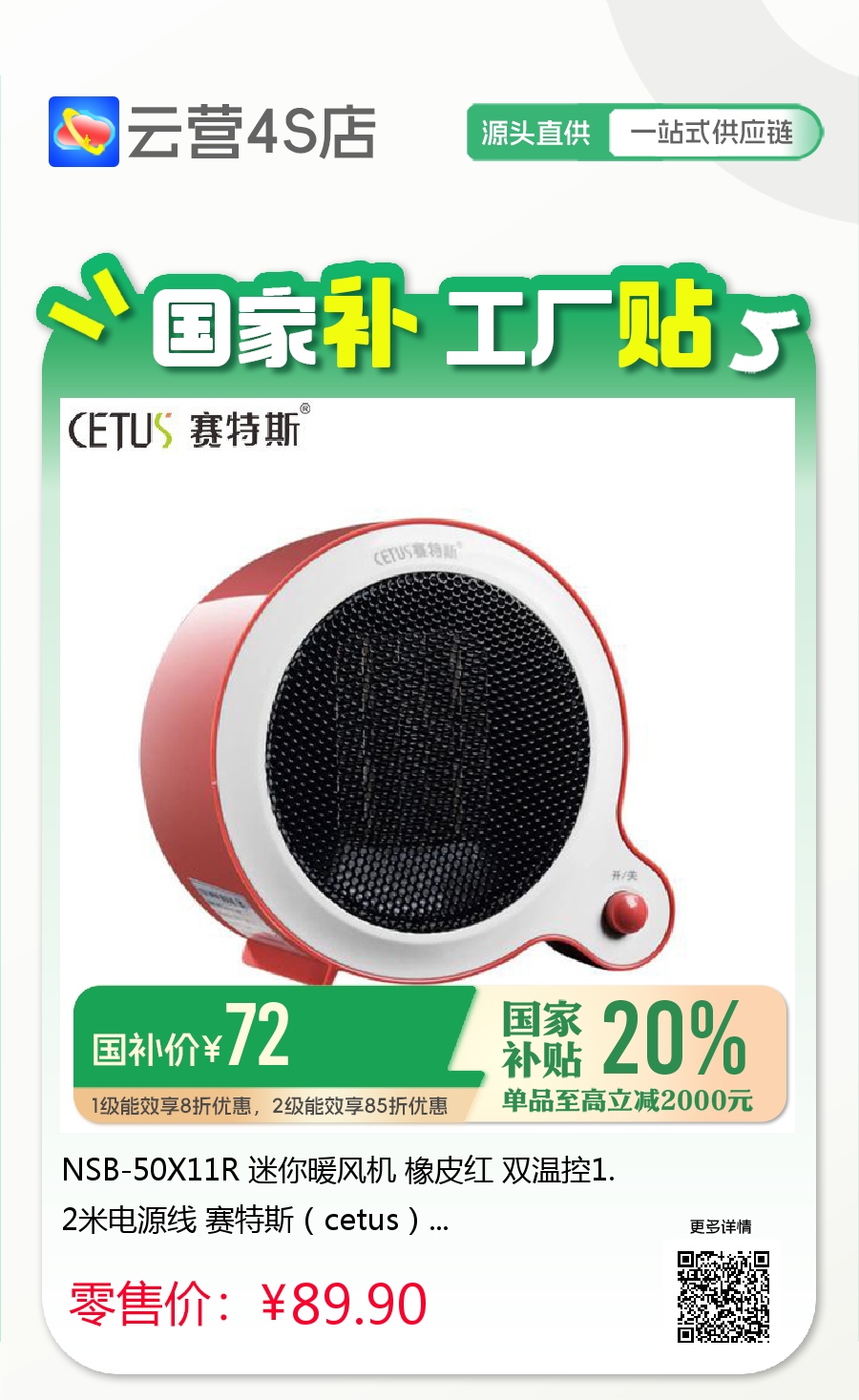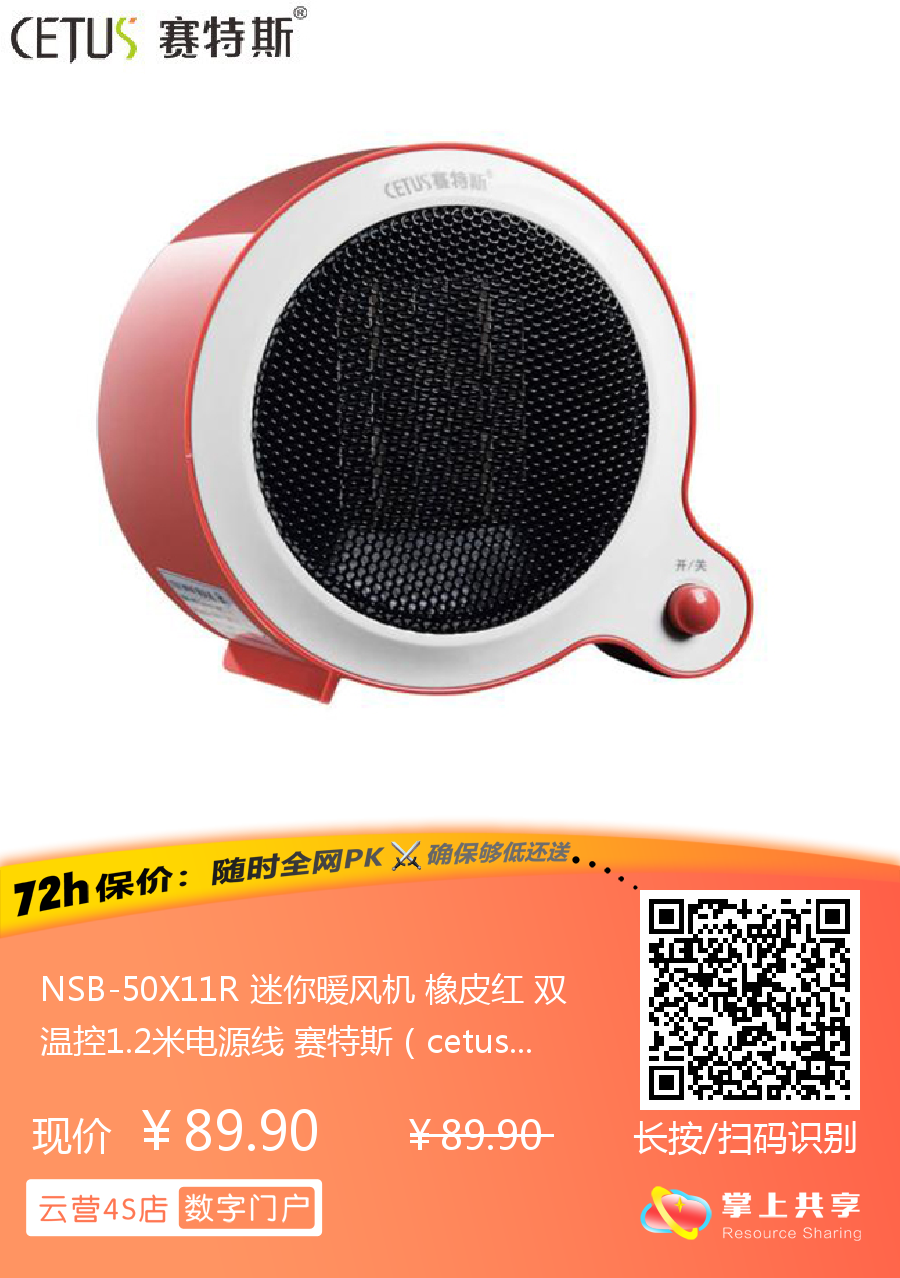 NSB-50X11R 迷你暖风机 橡皮红 双温控1.2米电源线 赛特斯(cetus)