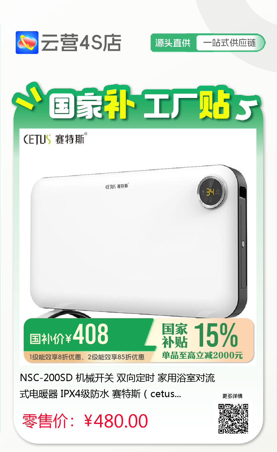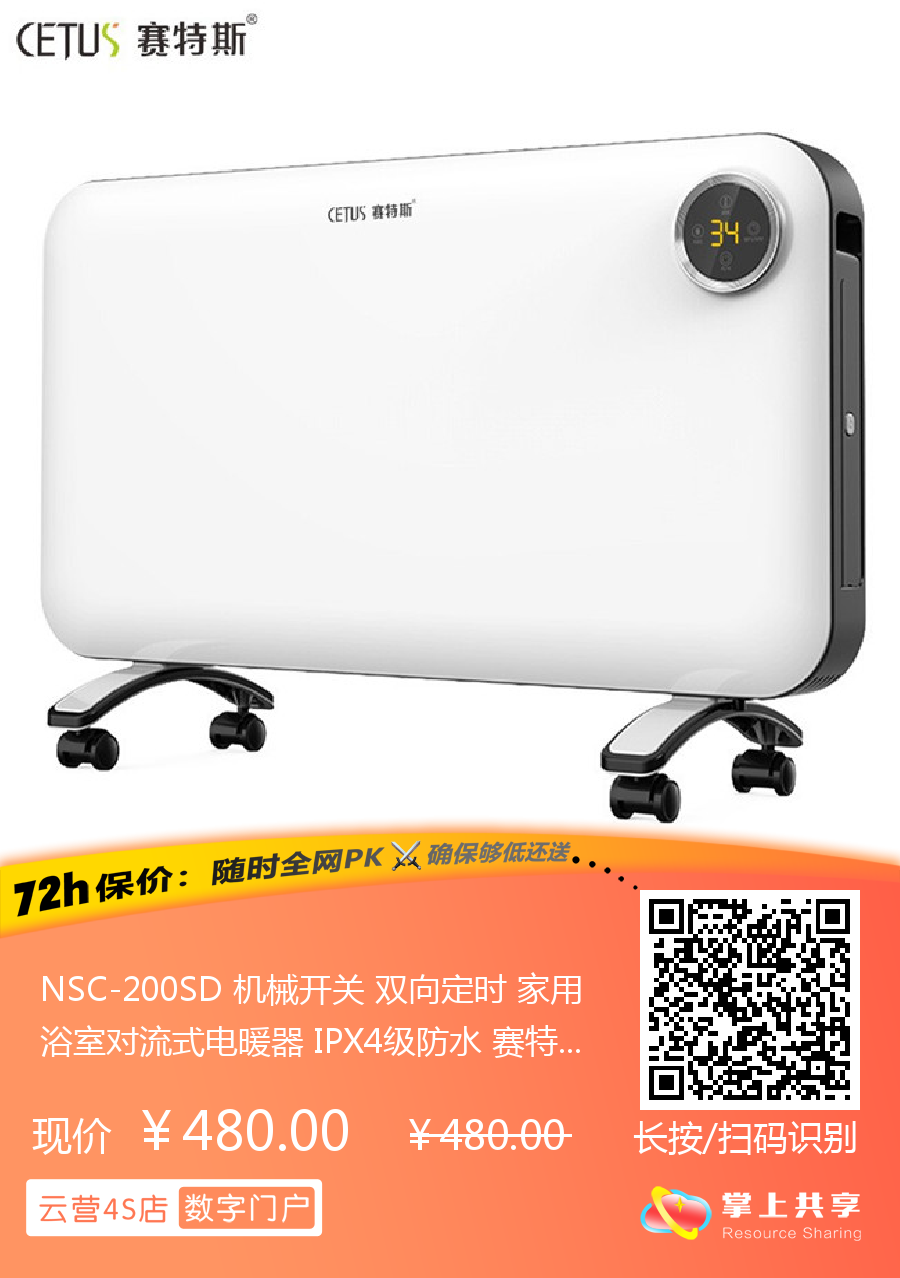 NSC-200SD 机械开关 双向定时 家用浴室对流式电暖器 IPX4级防水 赛特斯(cetus)