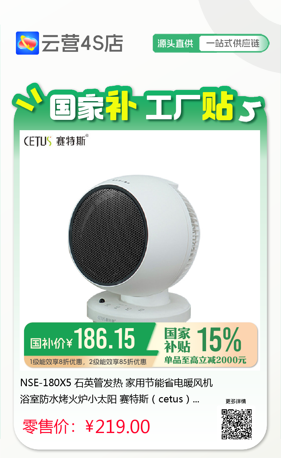 NSE-180X5 石英管发热 家用节能省电暖风机 浴室防水烤火炉小太阳 赛特斯(cetus)