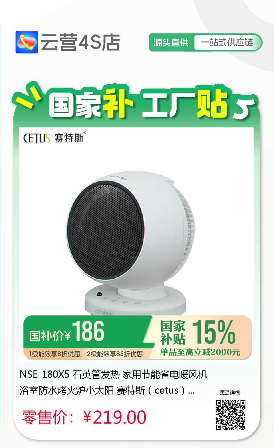 NSE-180X5 石英管发热 家用节能省电暖风机 浴室防水烤火炉小太阳 赛特斯(cetus)