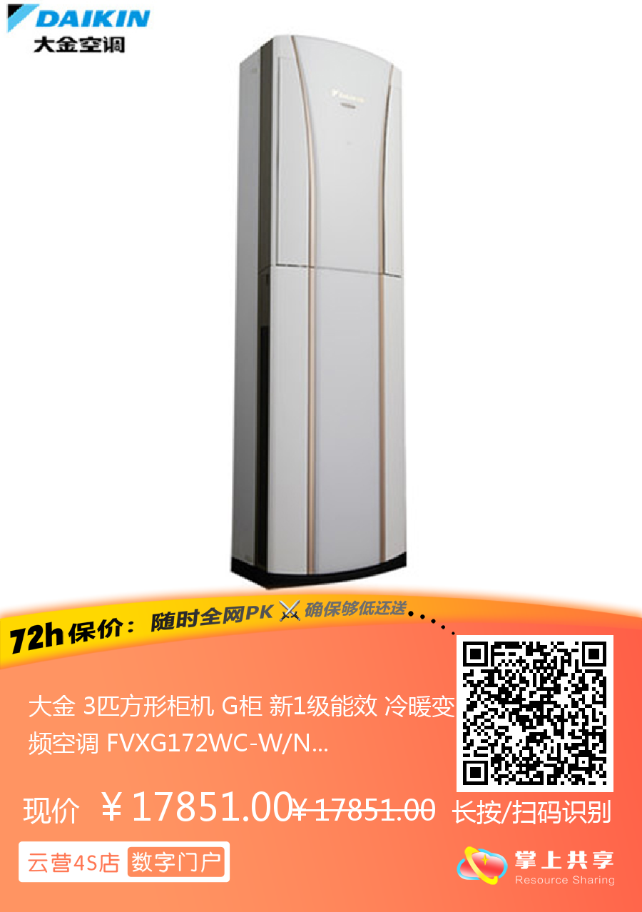 大金 3匹方形柜机 G柜 新1级能效 冷暖变频空调 FVXG172WC-W/N