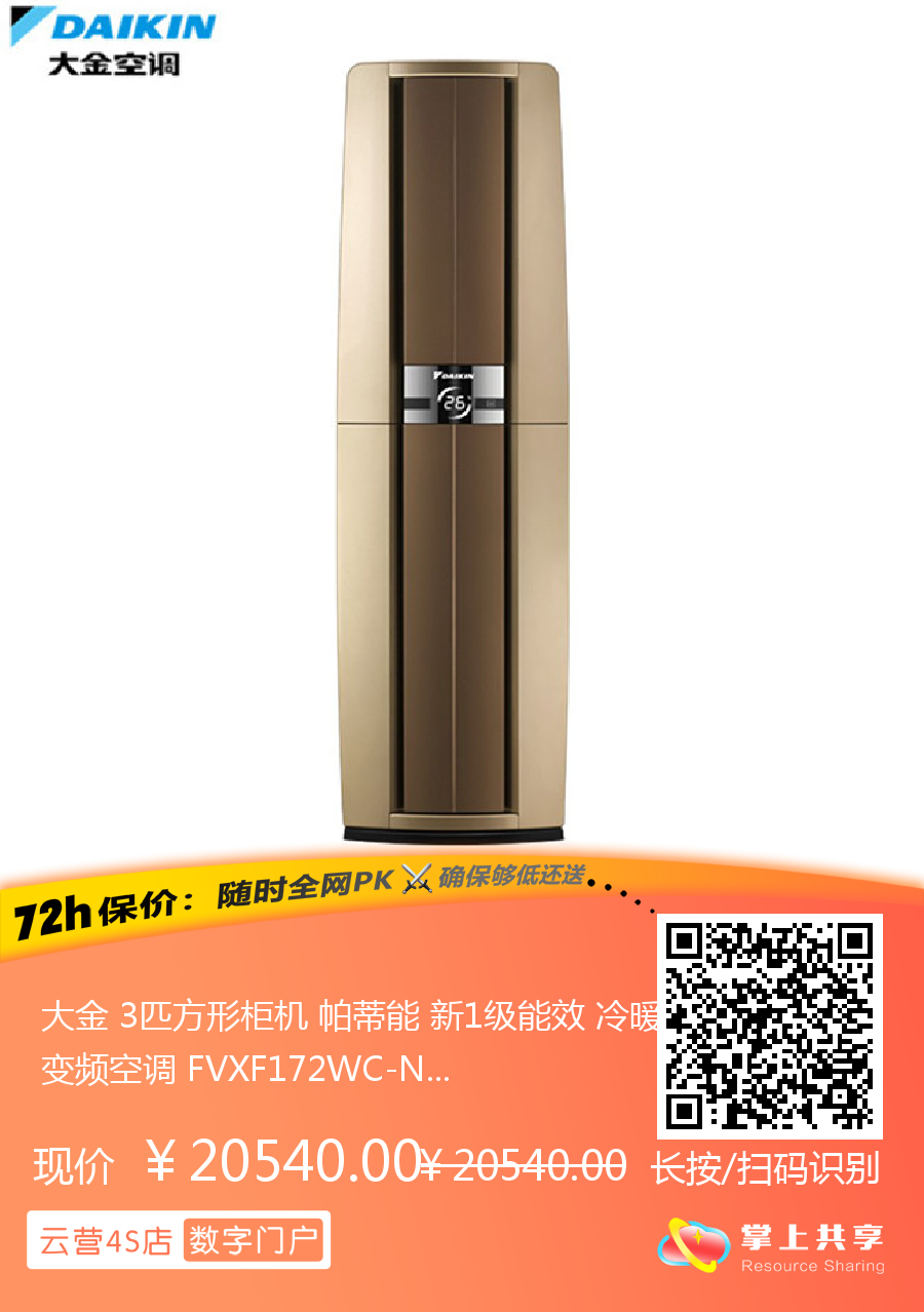 大金 3匹方形柜机 帕蒂能 新1级能效 冷暖变频空调 FVXF172WC-N