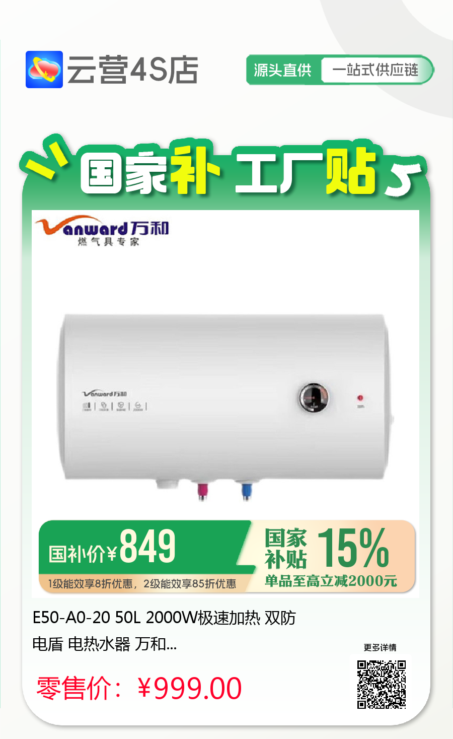 E50-A0-20 50L 2000W极速加热 双防电盾 电热水器 万和