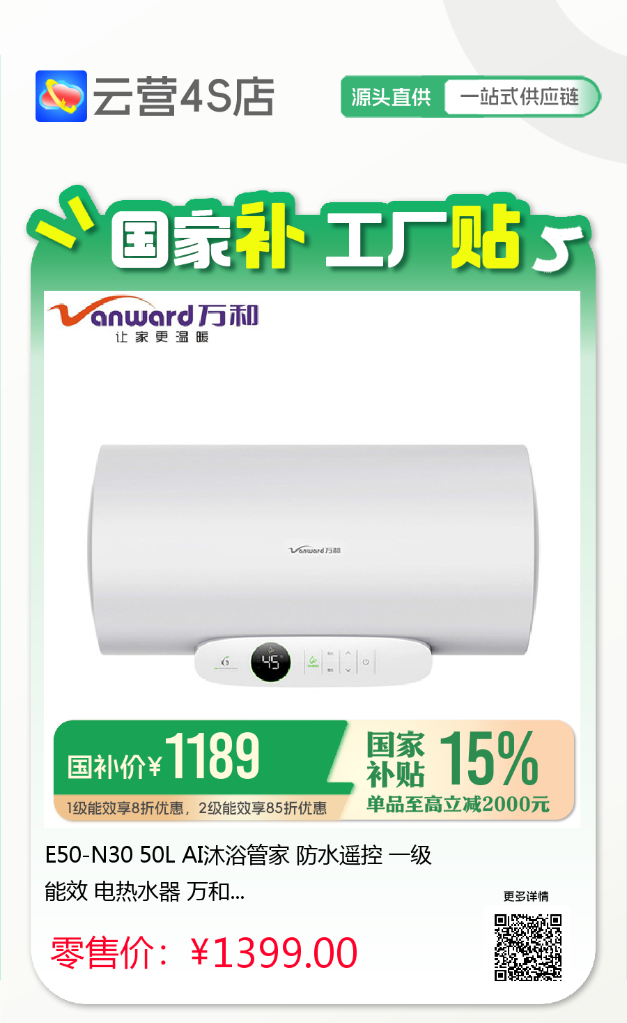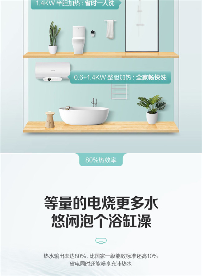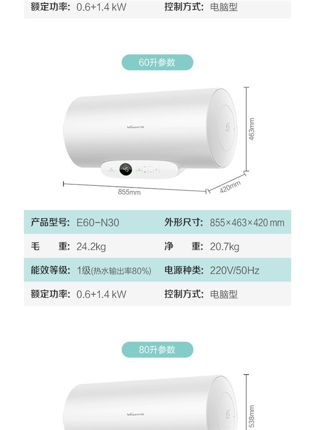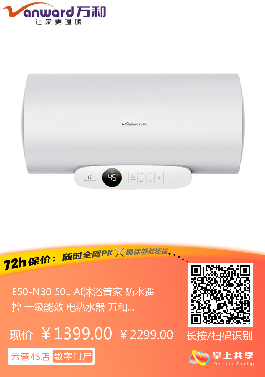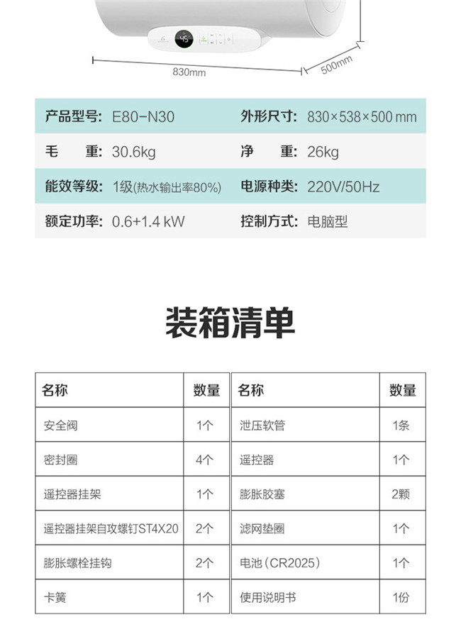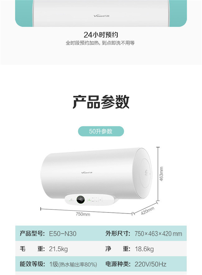 E50-N30 50L AI沐浴管家 防水遥控 一级能效 电热水器 万和