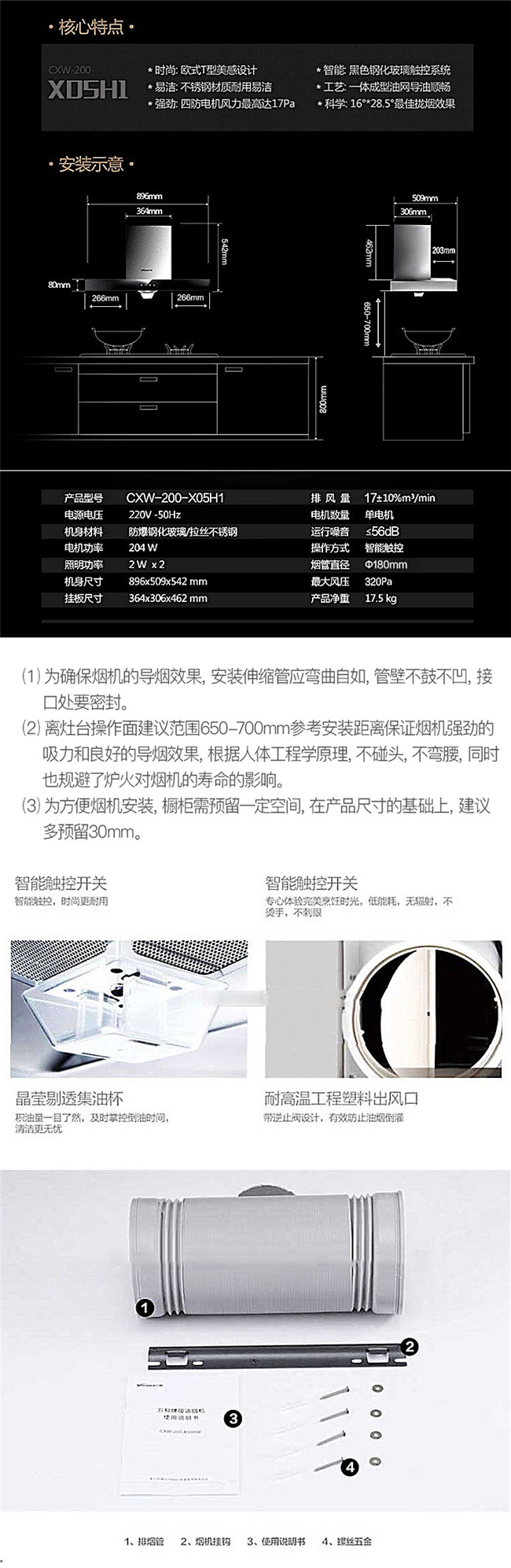 CXW-200-X05H1 风量17m³/min 静压320Pa T型欧式触摸屏 1级能效 顶吸
