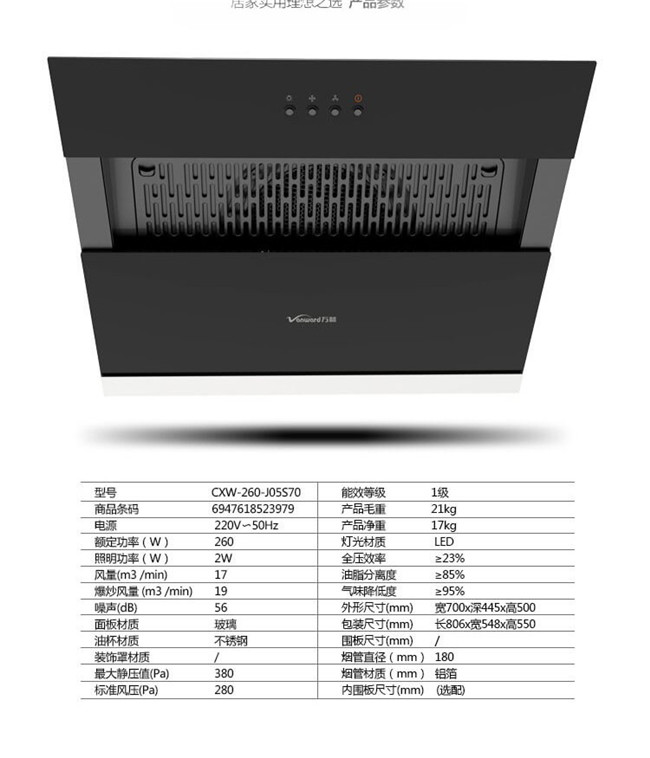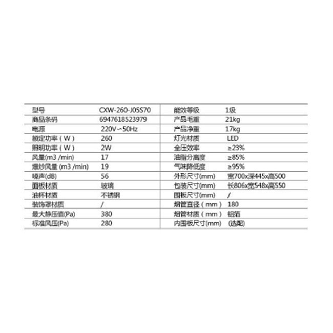 CXW-260-J05S70 风量17m³/min 静压380Pa 1级能效 侧吸