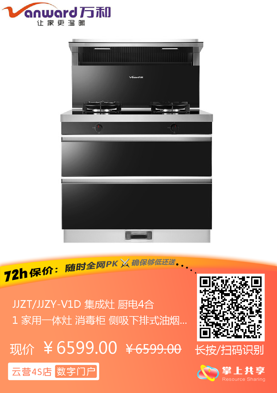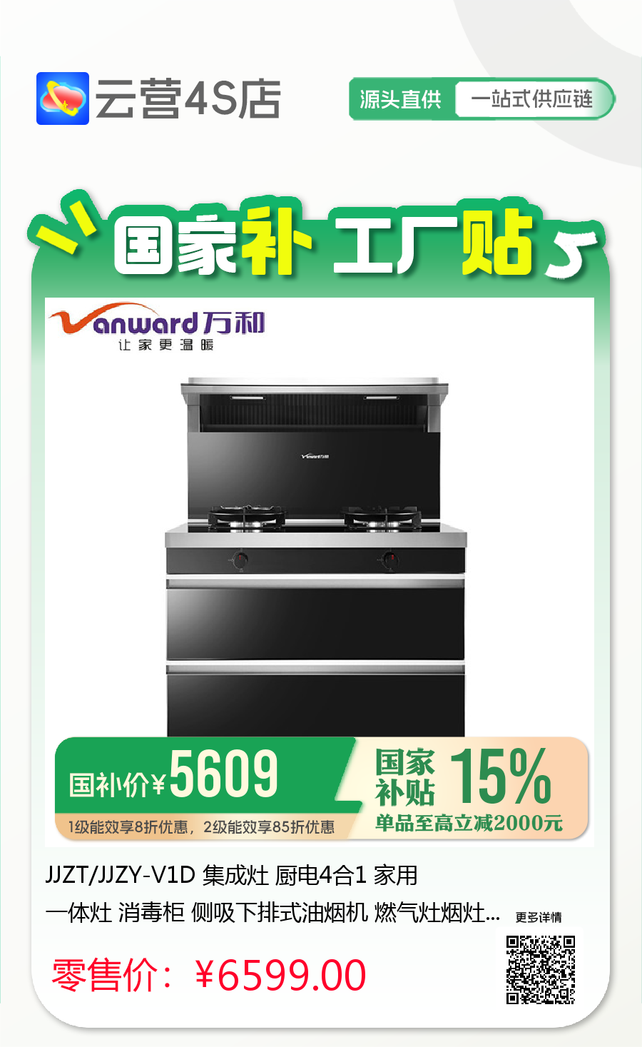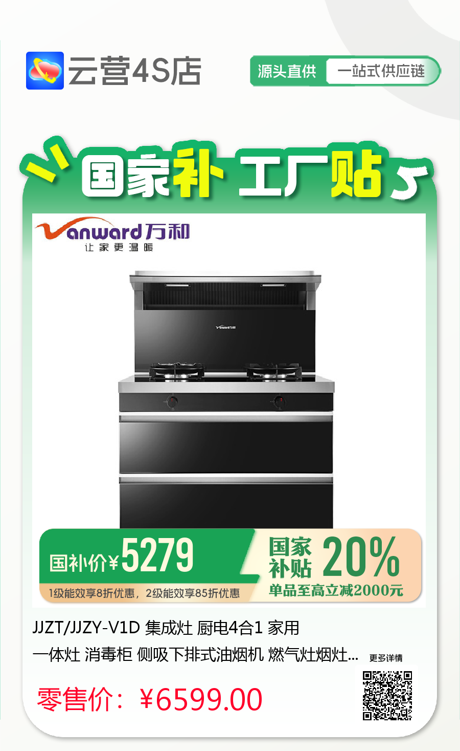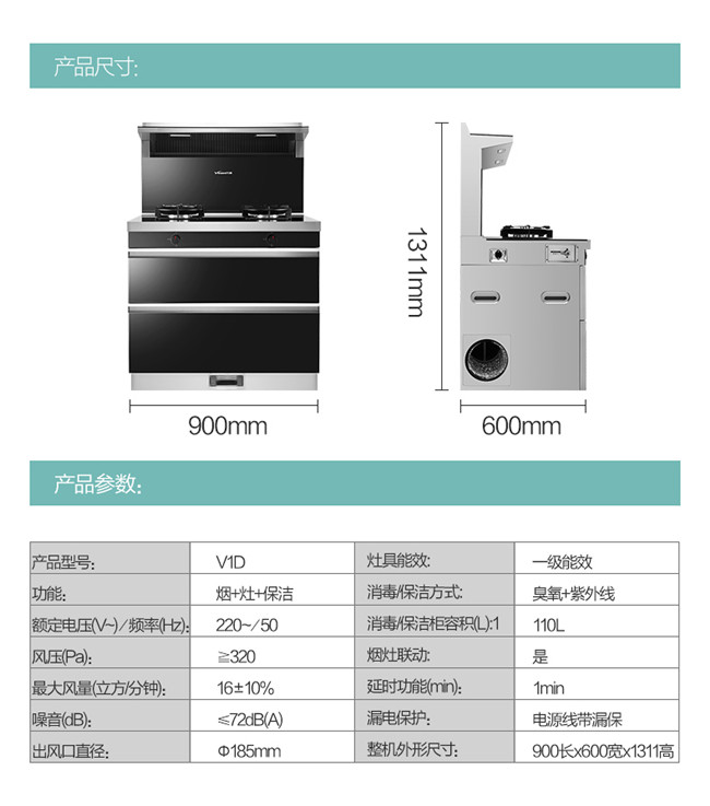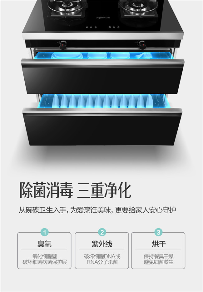 JJZT/JJZY-V1D 集成灶 厨电4合1 家用一体灶 消毒柜 侧吸下排式油烟机 燃气灶烟灶