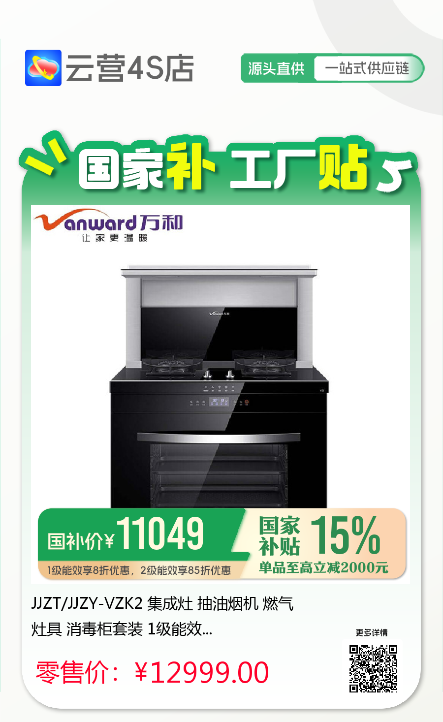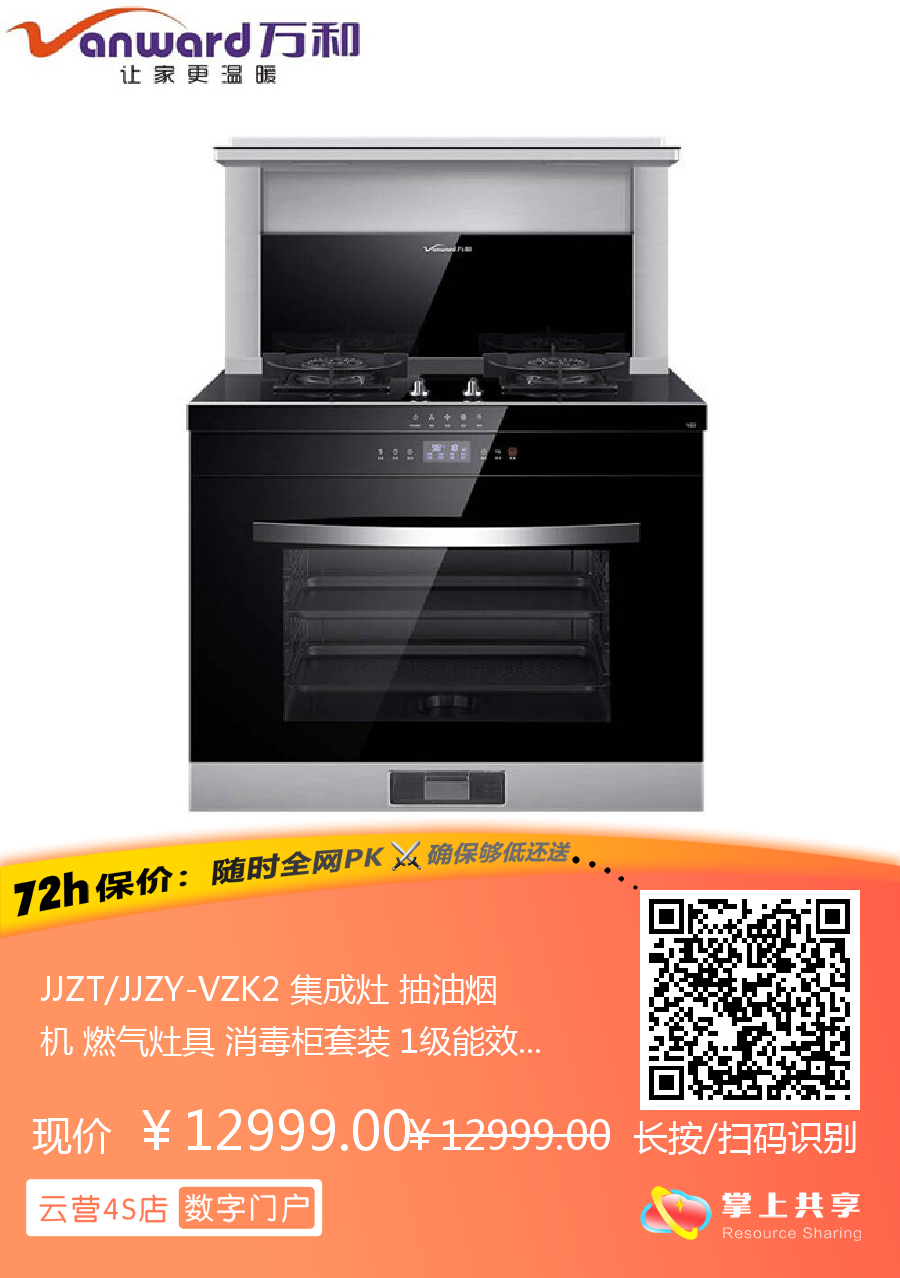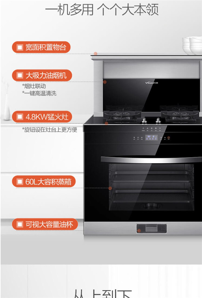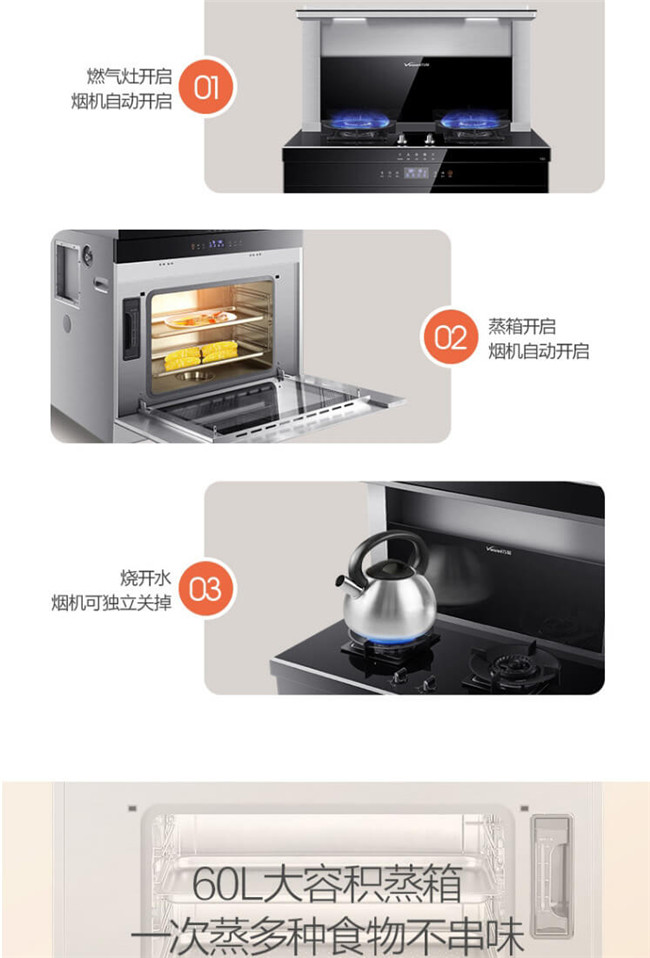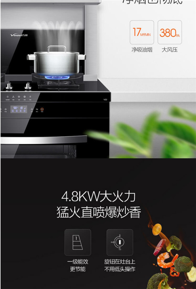 JJZT/JJZY-VZK2 集成灶 抽油烟机 燃气灶具 消毒柜套装 1级能效