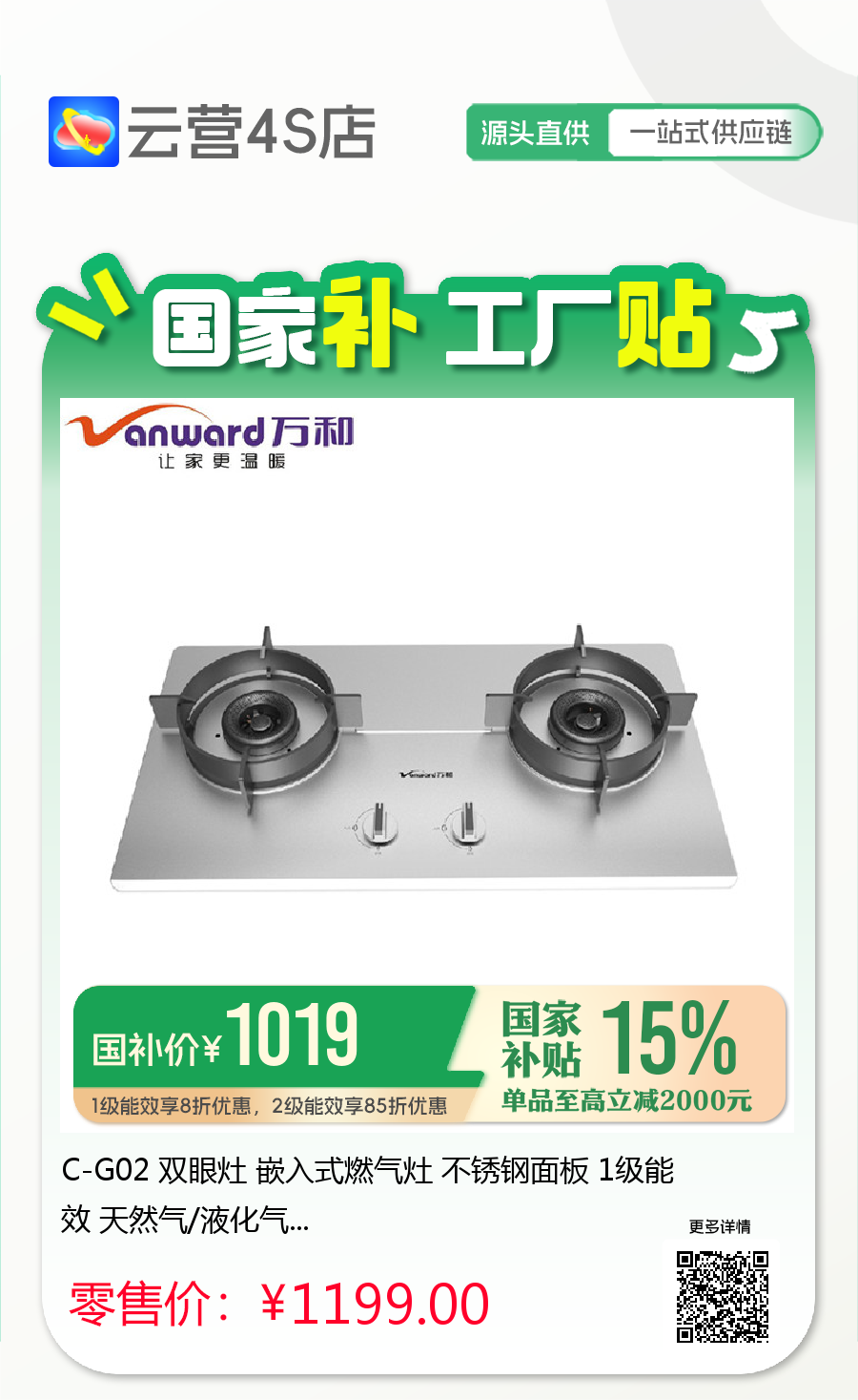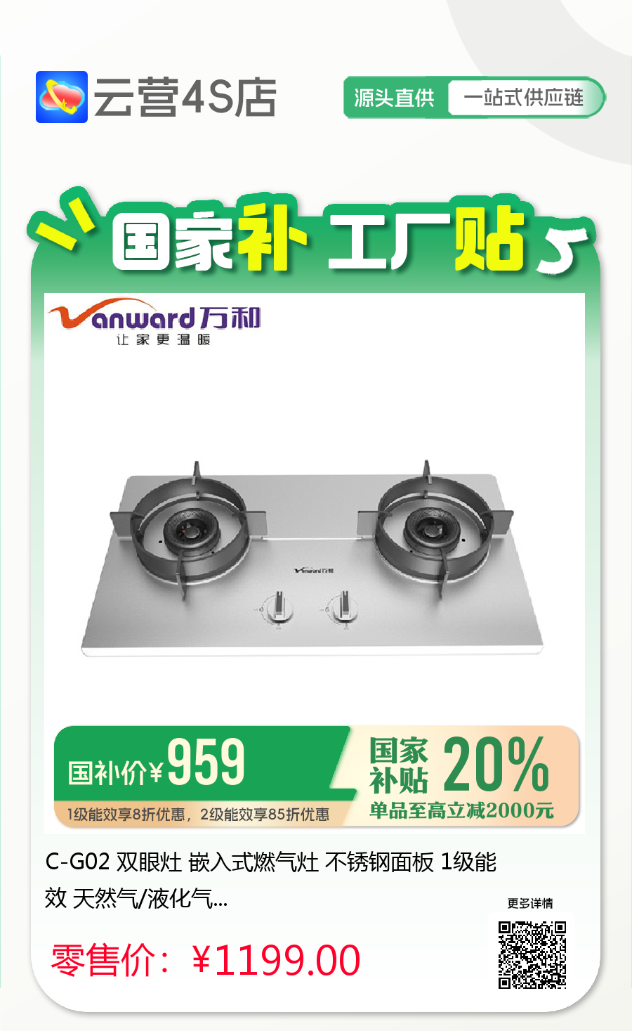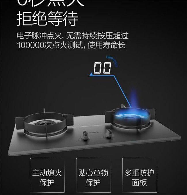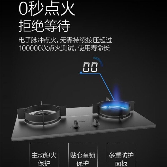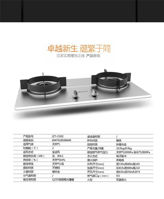 C-G02 双眼灶 嵌入式燃气灶 不锈钢面板 1级能效 天然气/液化气