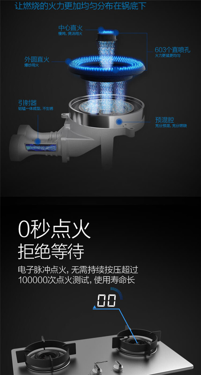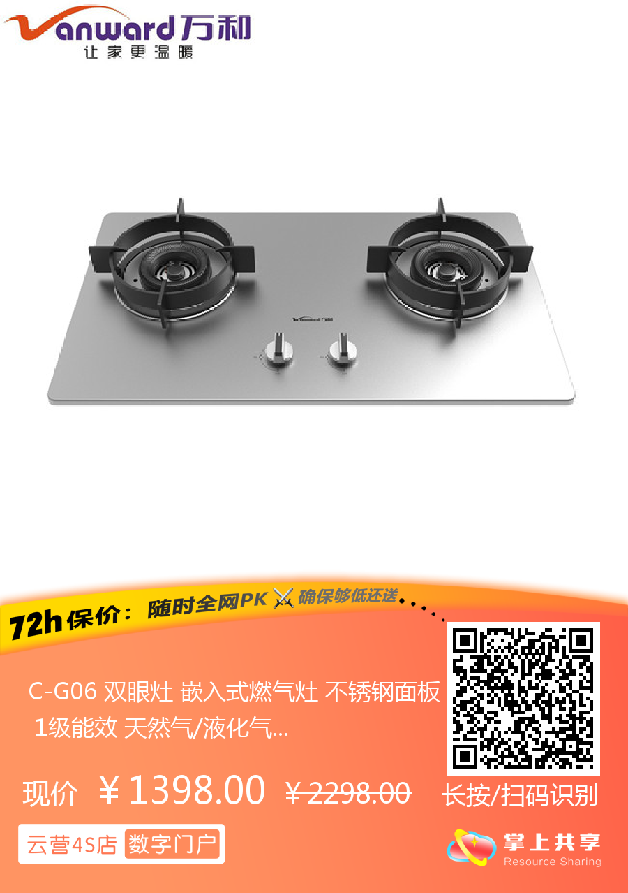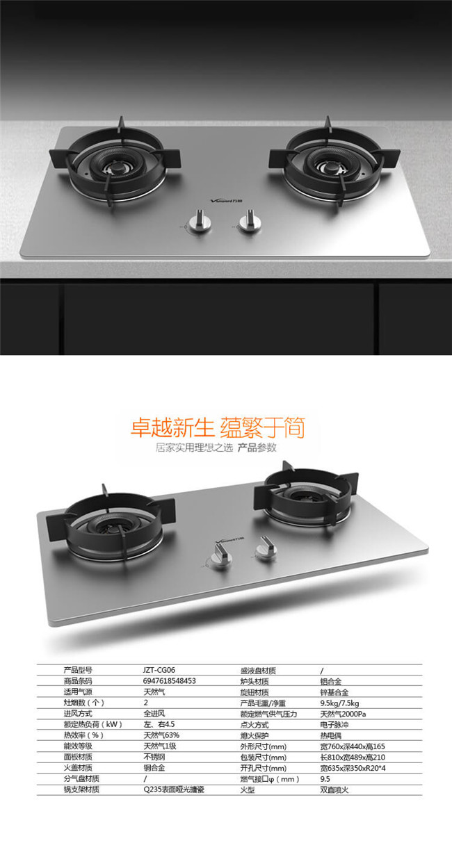 C-G06 双眼灶 嵌入式燃气灶 不锈钢面板 1级能效 天然气/液化气