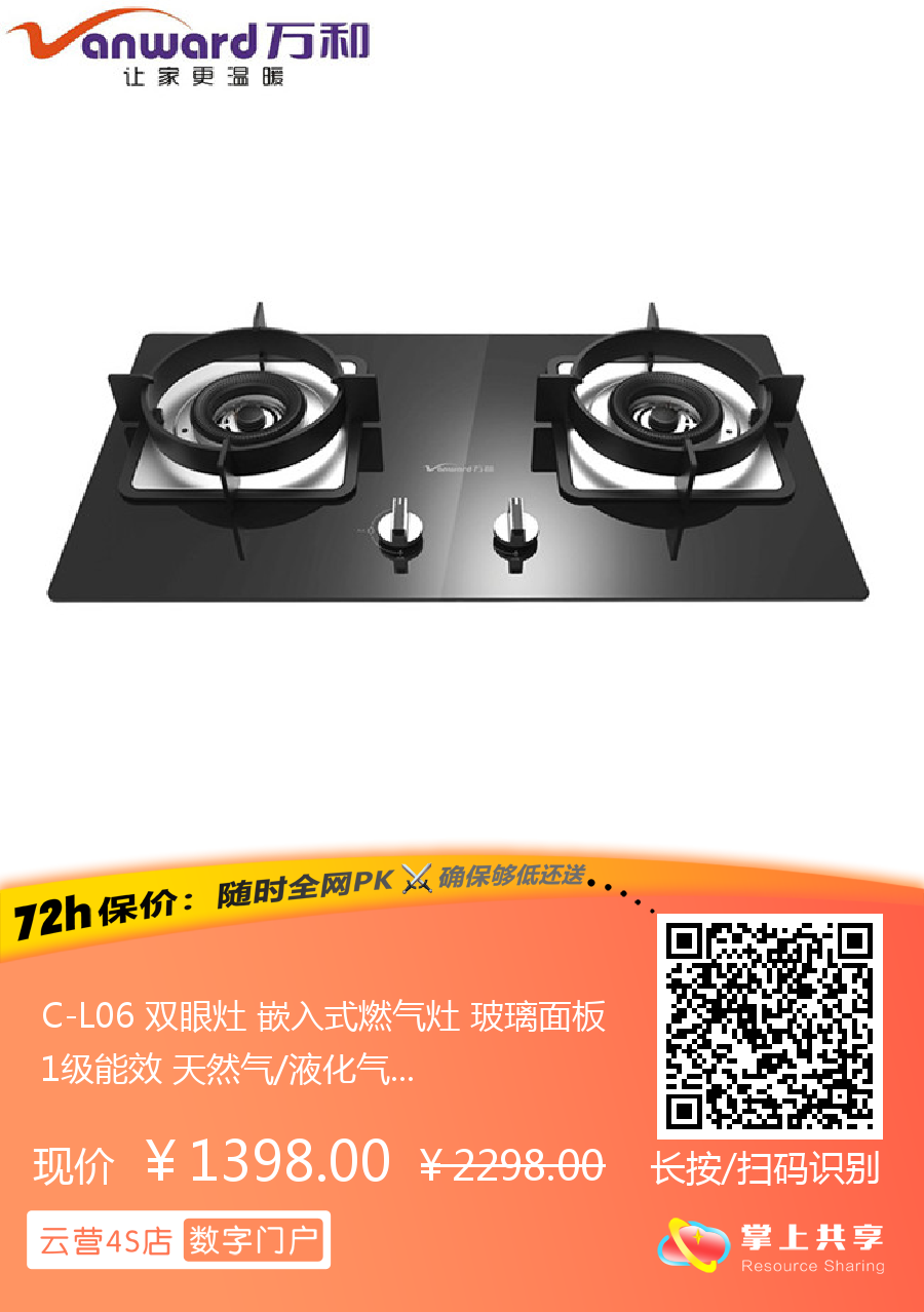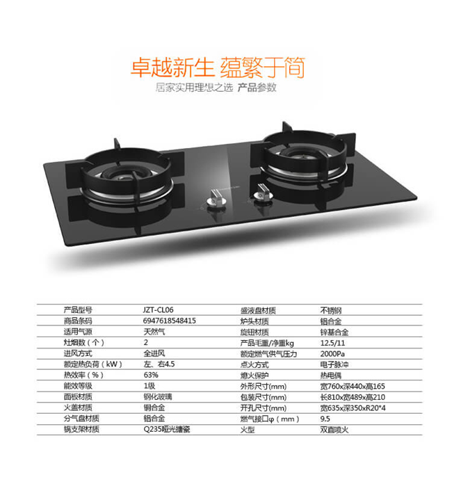 C-L06 双眼灶 嵌入式燃气灶 玻璃面板 1级能效 天然气/液化气