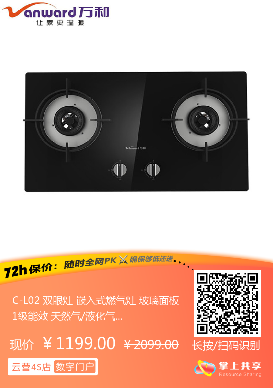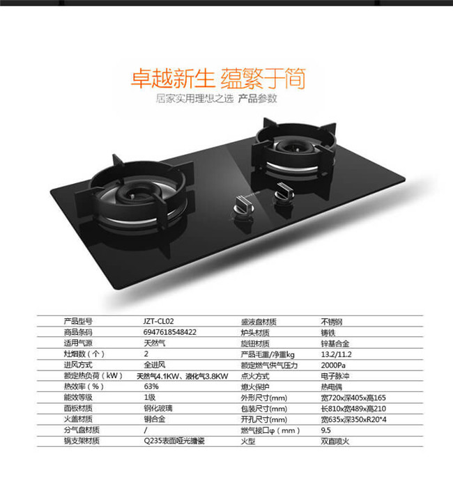 C-L02 双眼灶 嵌入式燃气灶 玻璃面板 1级能效 天然气/液化气