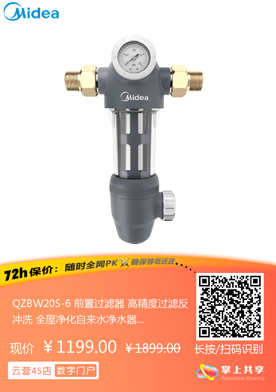 QZBW20S-6 前置过滤器 高精度过滤反冲洗 全屋净化自来水净水器