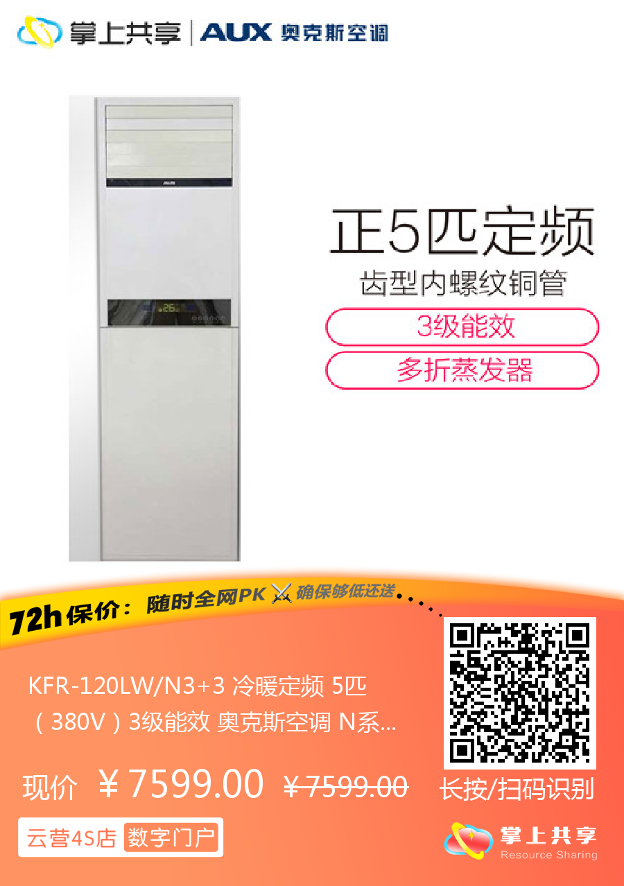 KFR-120LW/N3+3 冷暖定频 5匹(380V)3级能效 奥克斯空调 N系列