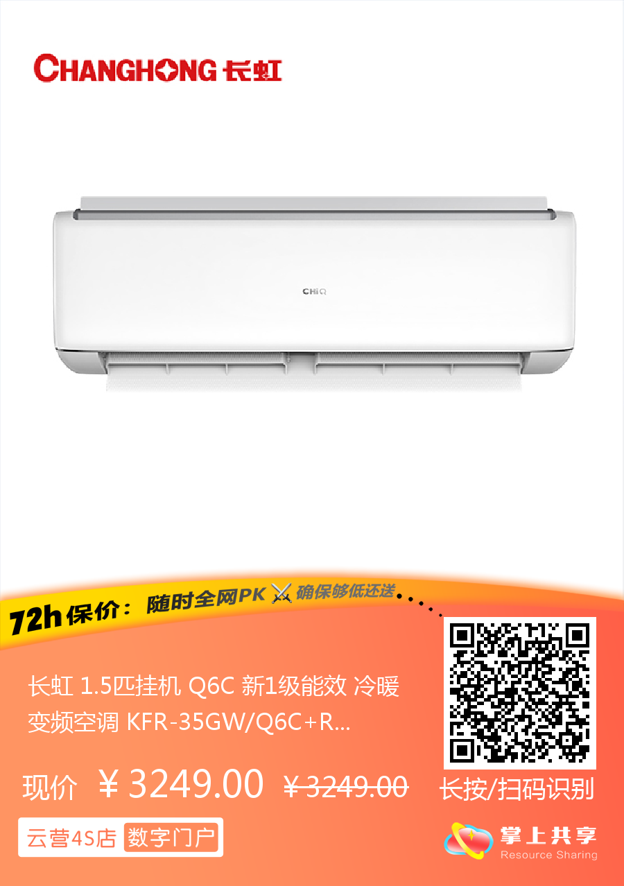 长虹 1.5匹挂机 Q6C 新1级能效 冷暖变频空调 KFR-35GW/Q6C+R1