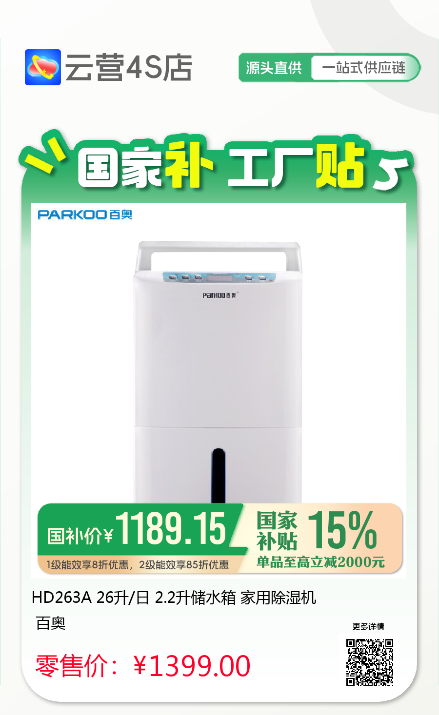 HD263A 26升/日 2.2升储水箱 家用除湿机 百奥