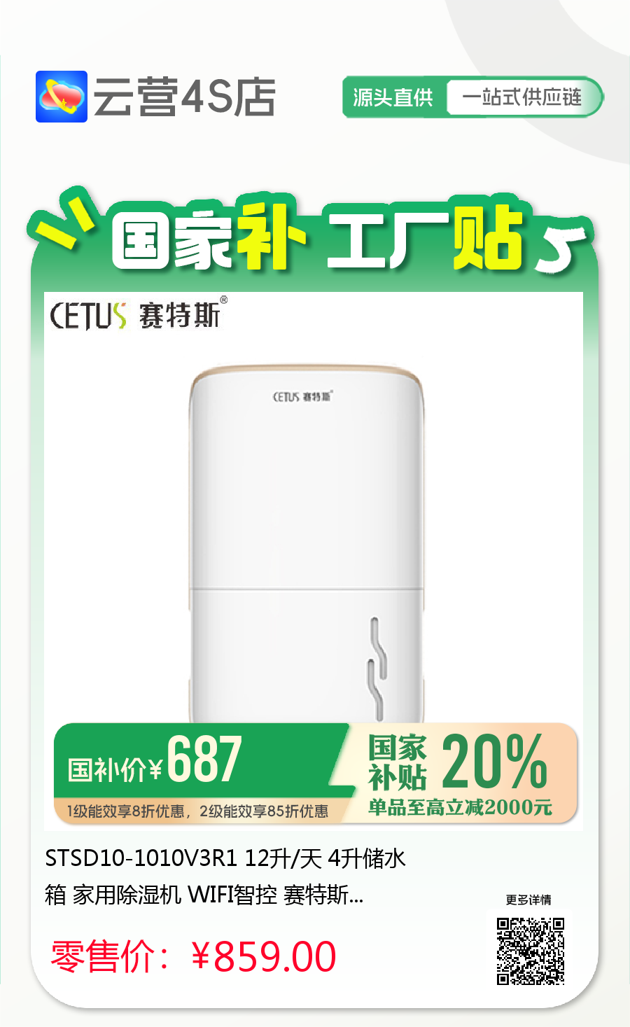 STSD10-1010V3R1 12升/天 4升储水箱 家用除湿机 WIFI智控 赛特斯