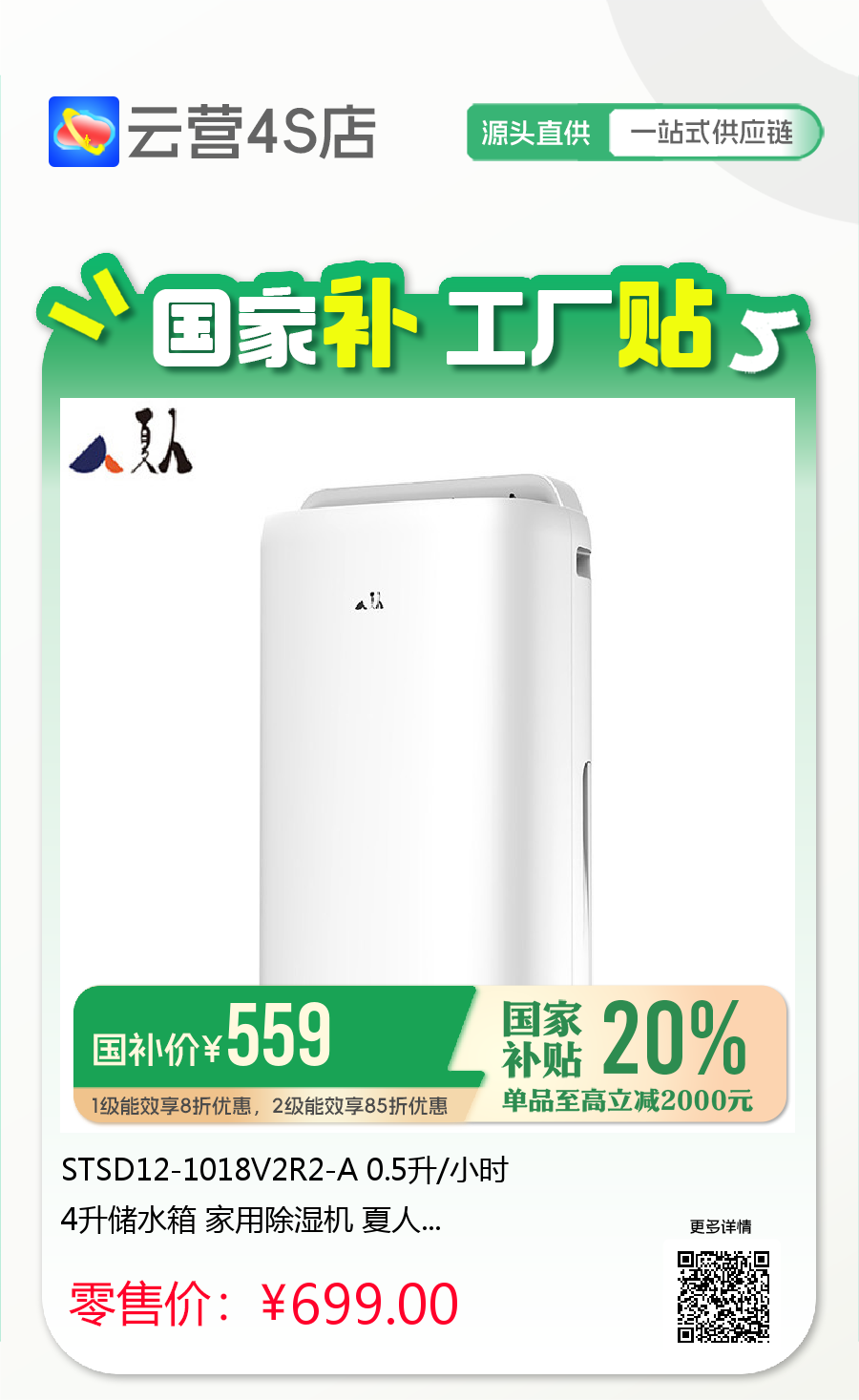 STSD12-1018V2R2-A 0.5升/小时 4升储水箱 家用除湿机 夏人
