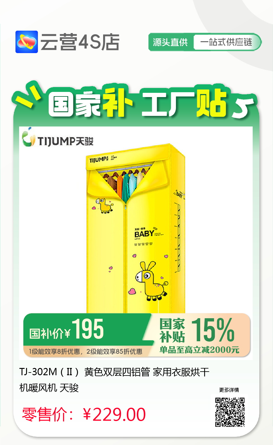 TJ-302M(II) 黄色双层四铝管 家用衣服烘干机暖风机 天骏