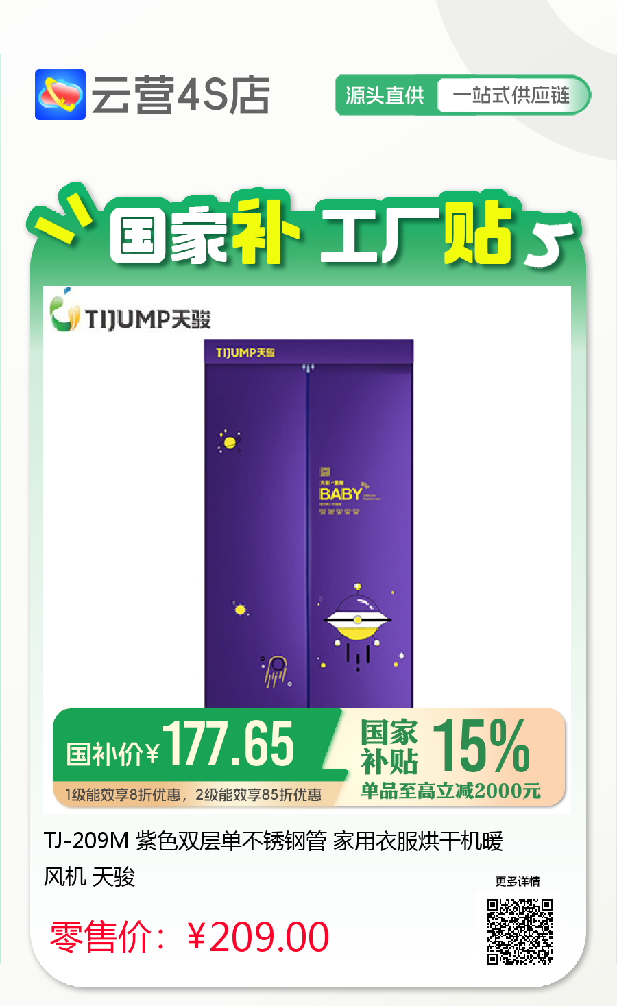 TJ-209M 紫色双层单不锈钢管 家用衣服烘干机暖风机 天骏