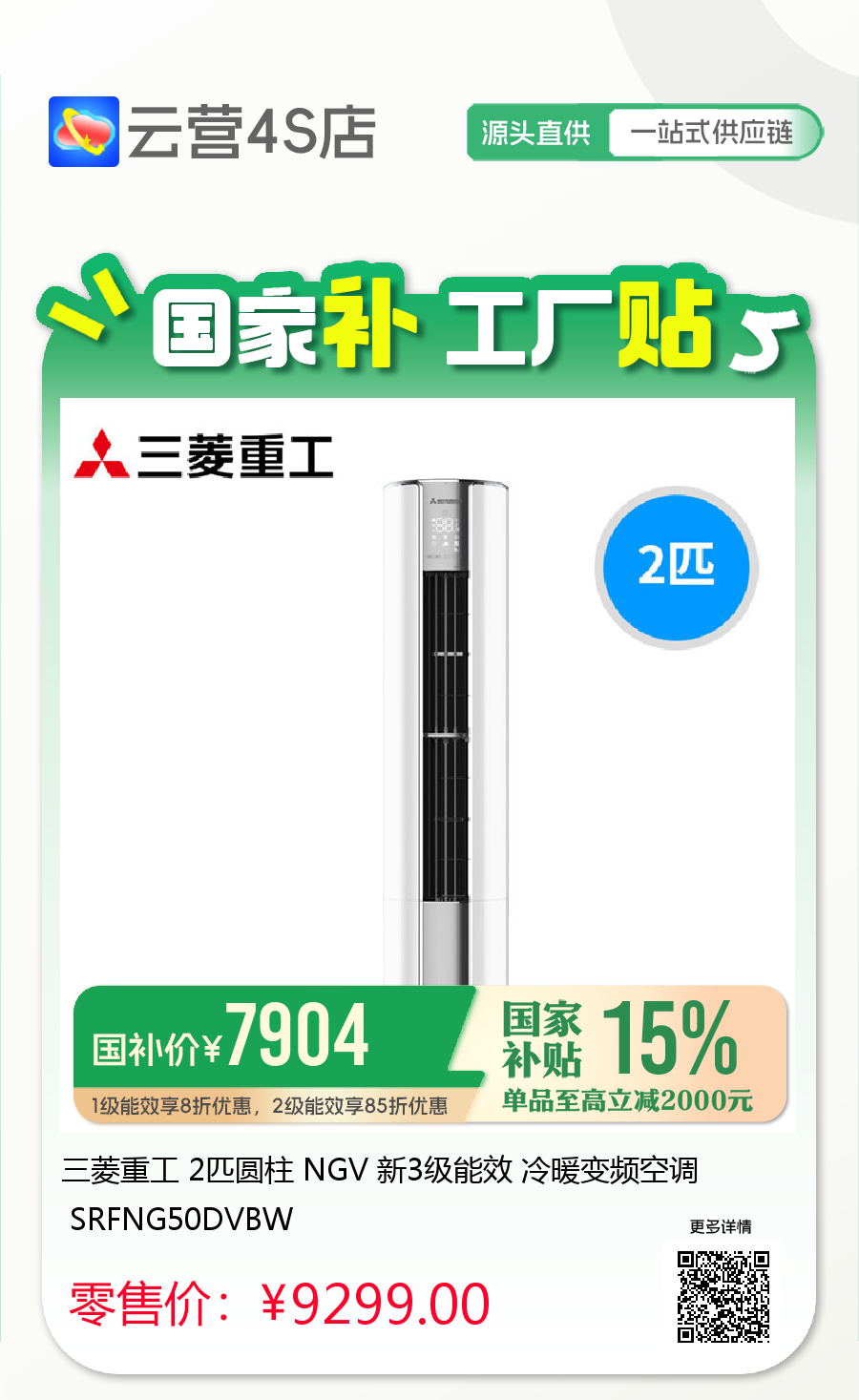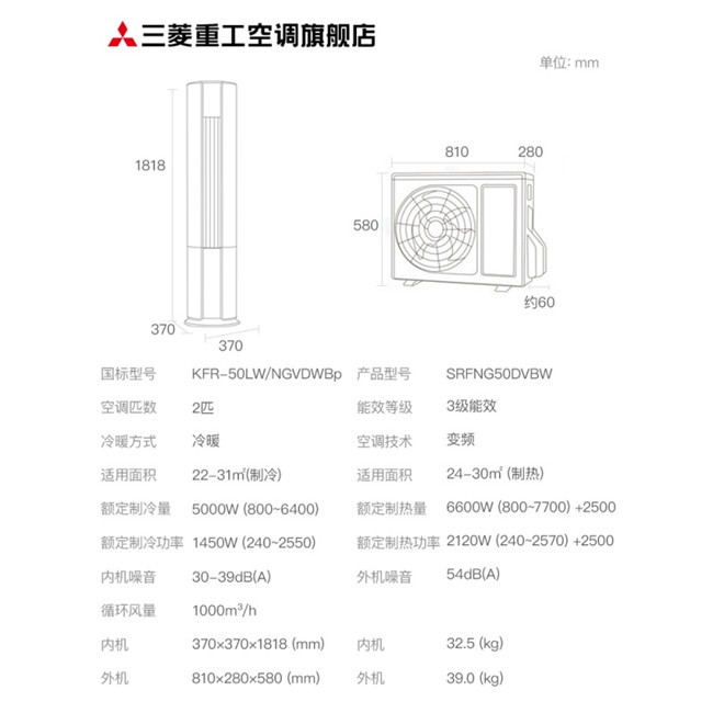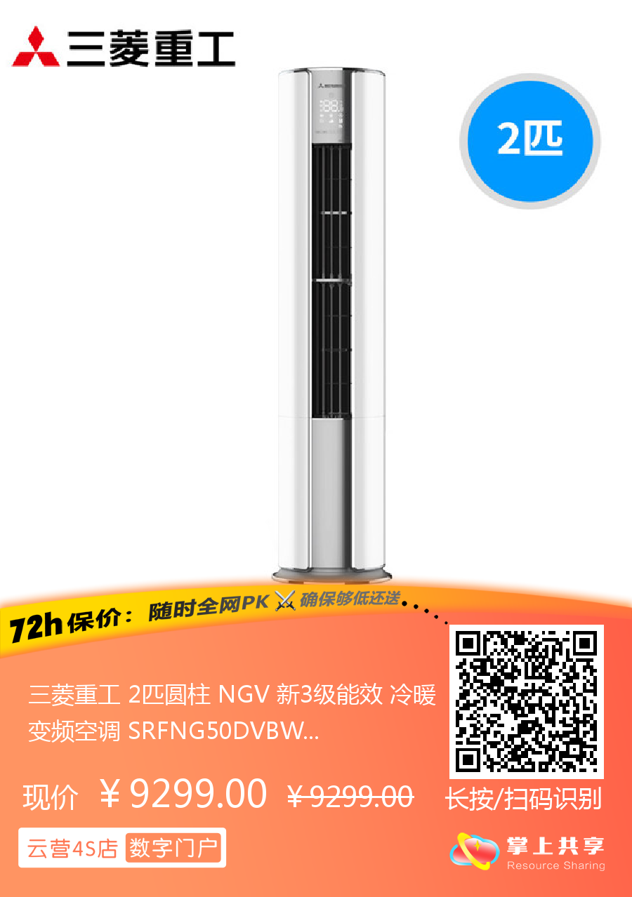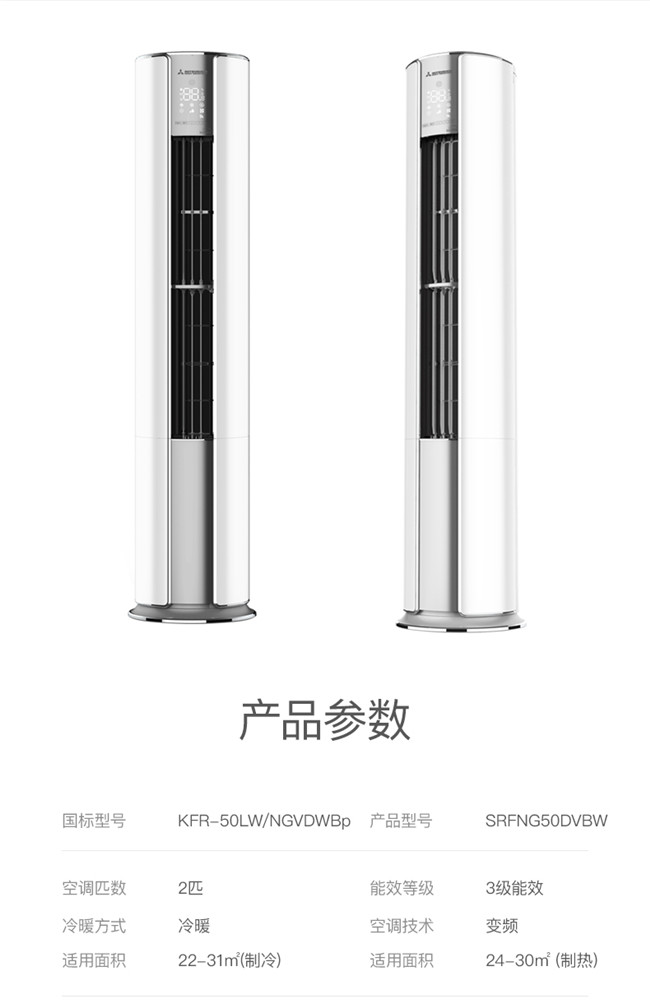 三菱重工 2匹圆柱 NGV 新3级能效 冷暖变频空调 SRFNG50DVBW