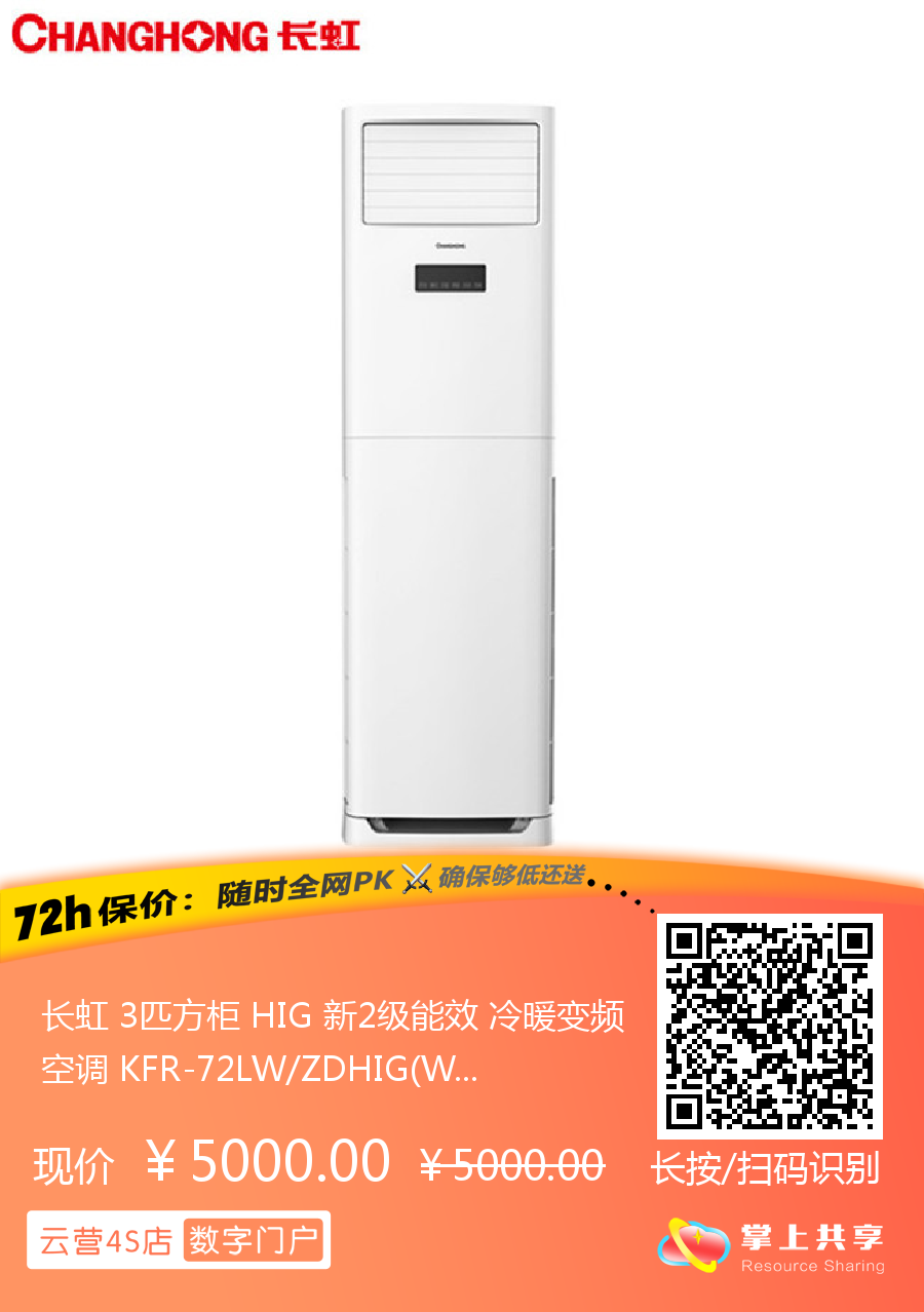 长虹 3匹方柜 HIG 新2级能效 冷暖变频空调 KFR-72LW/ZDHIG(W1-G)+R2