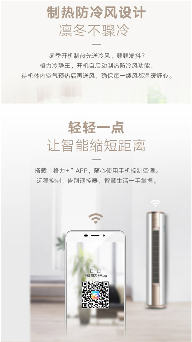 格力 2匹圆柱 冷静王 新1级能效 冷暖变频空调 KFR-50LW/(50583)FNhAb-B1(WIFI)(金秋白)