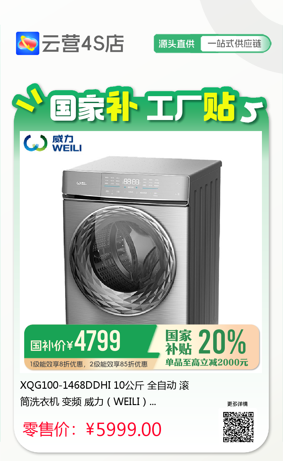 XQG100-1468DDHI 10公斤 全自动 滚筒洗衣机 变频 威力(WEILI)