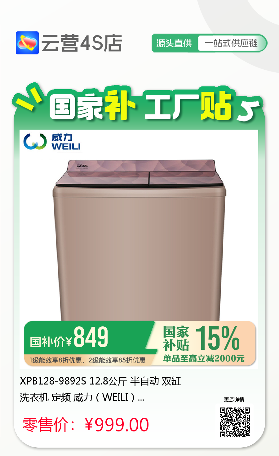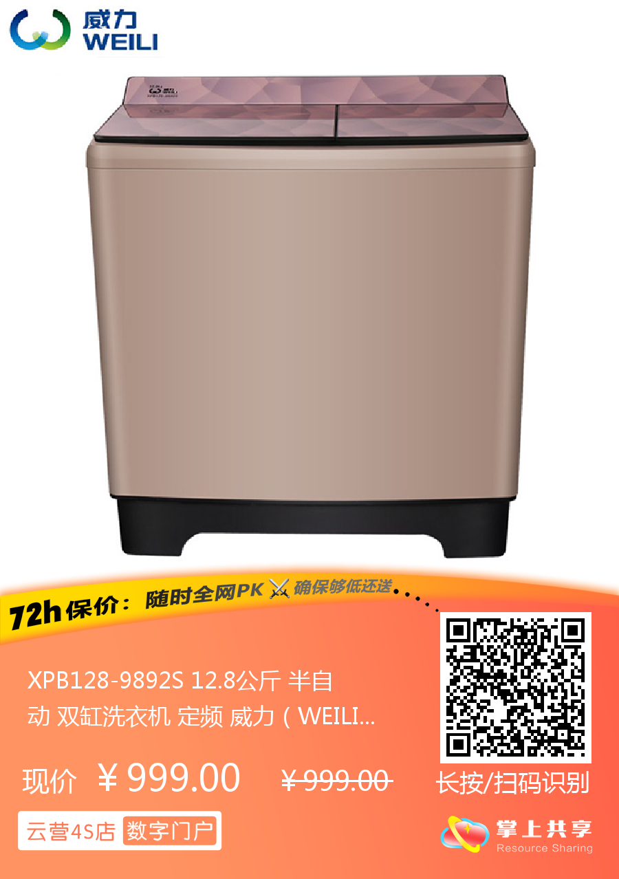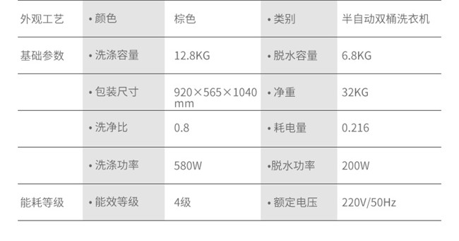 XPB128-9892S 12.8公斤 半自动 双缸洗衣机 定频 威力(WEILI)