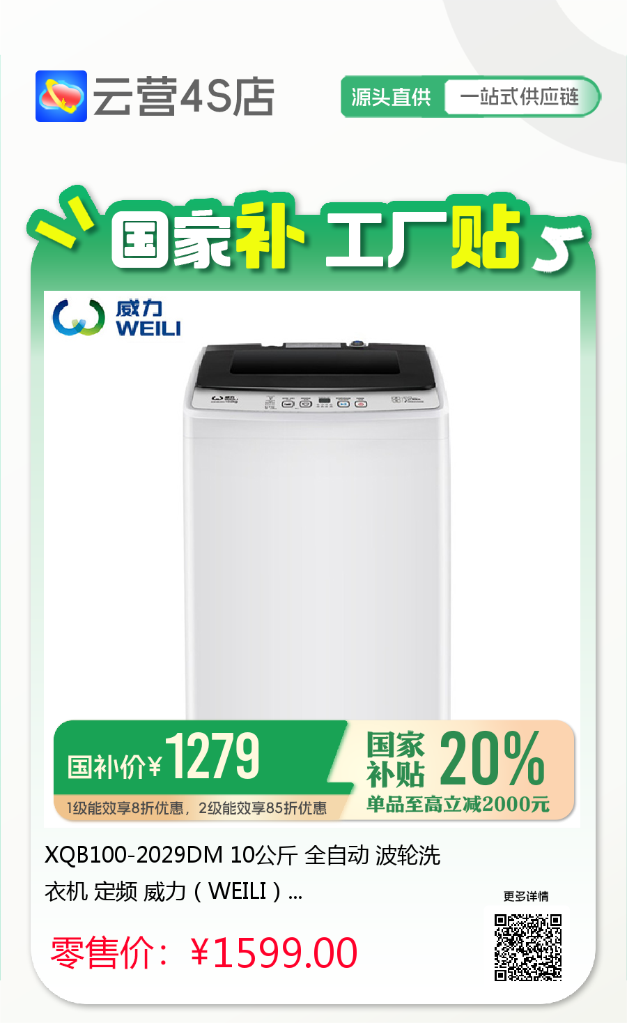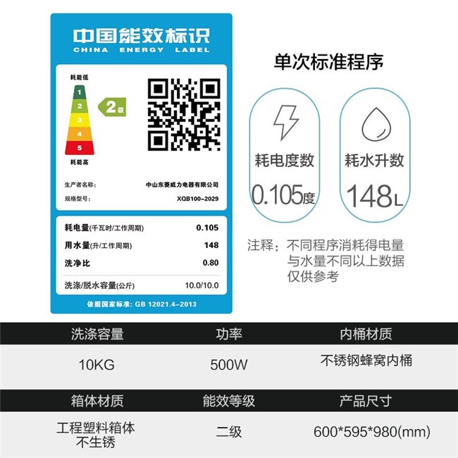 XQB100-2029DM 10公斤 全自动 波轮洗衣机 定频 威力(WEILI)