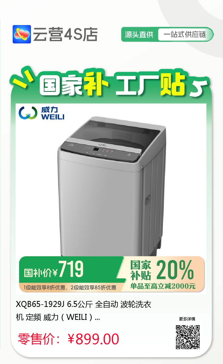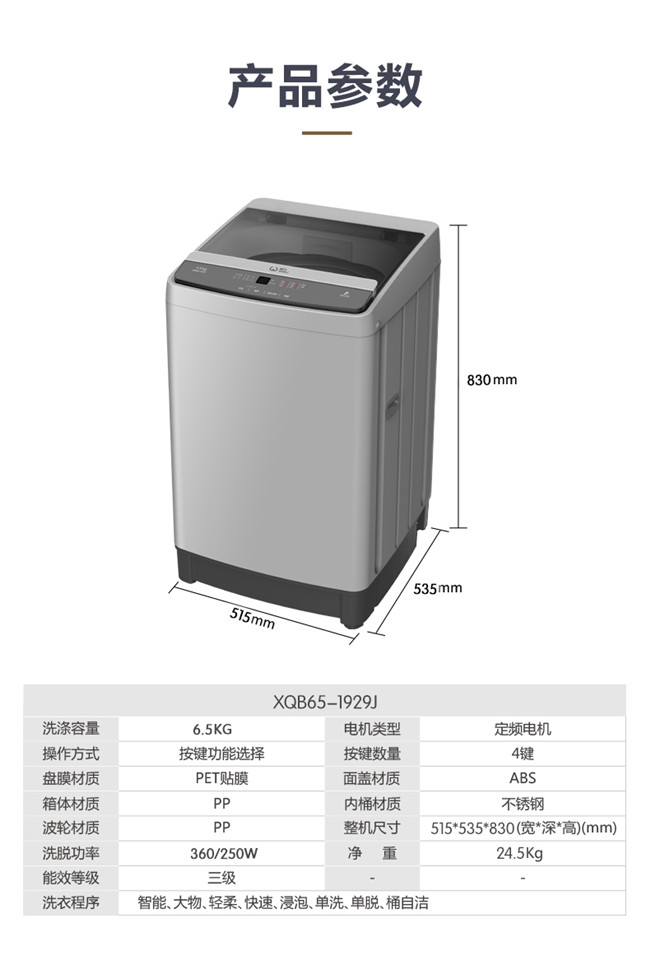 XQB65-1929J 6.5公斤 全自动 波轮洗衣机 定频 威力(WEILI)