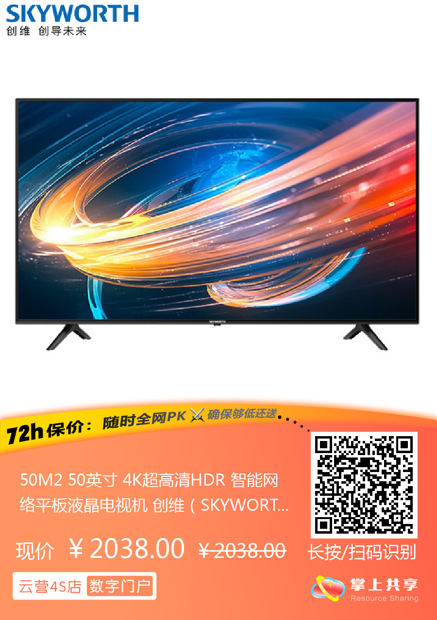 50M2 50英寸 4K超高清HDR 智能网络平板液晶电视机 创维(SKYWORTH)