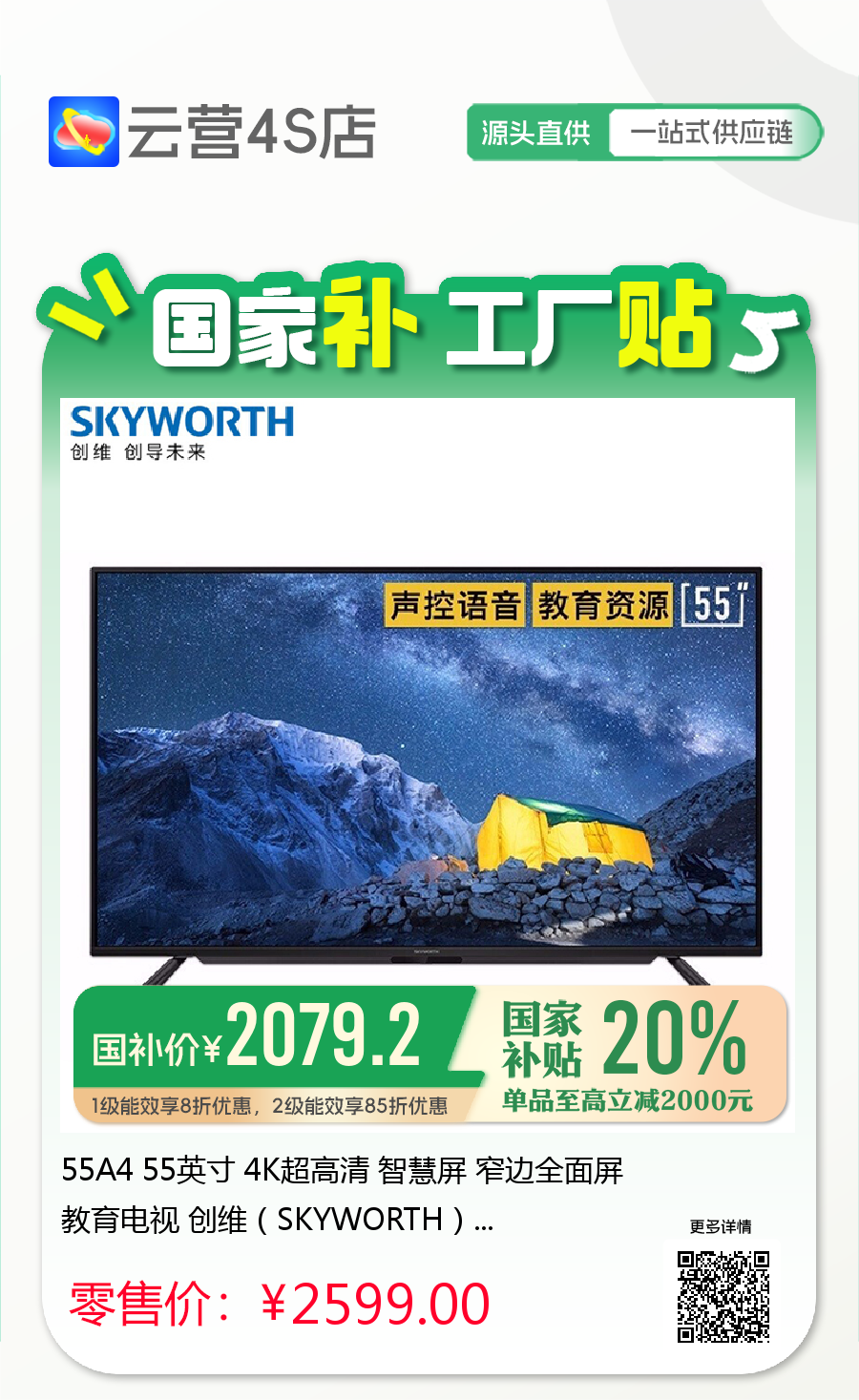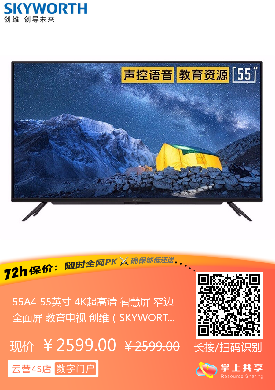 55A4 55英寸 4K超高清 智慧屏 窄边全面屏 教育电视 创维(SKYWORTH)