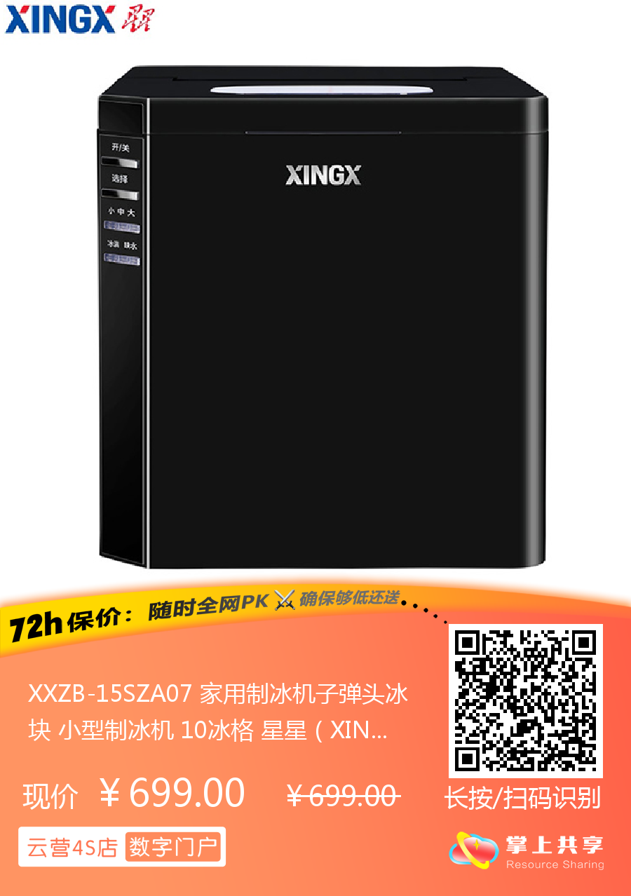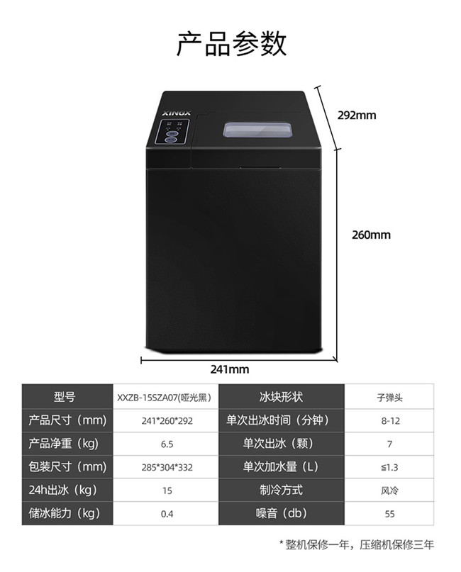 XXZB-15SZA07 家用制冰机子弹头冰块 小型制冰机 10冰格 星星(XINGX)