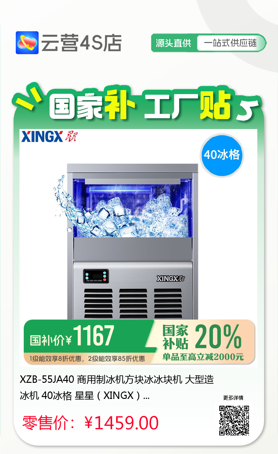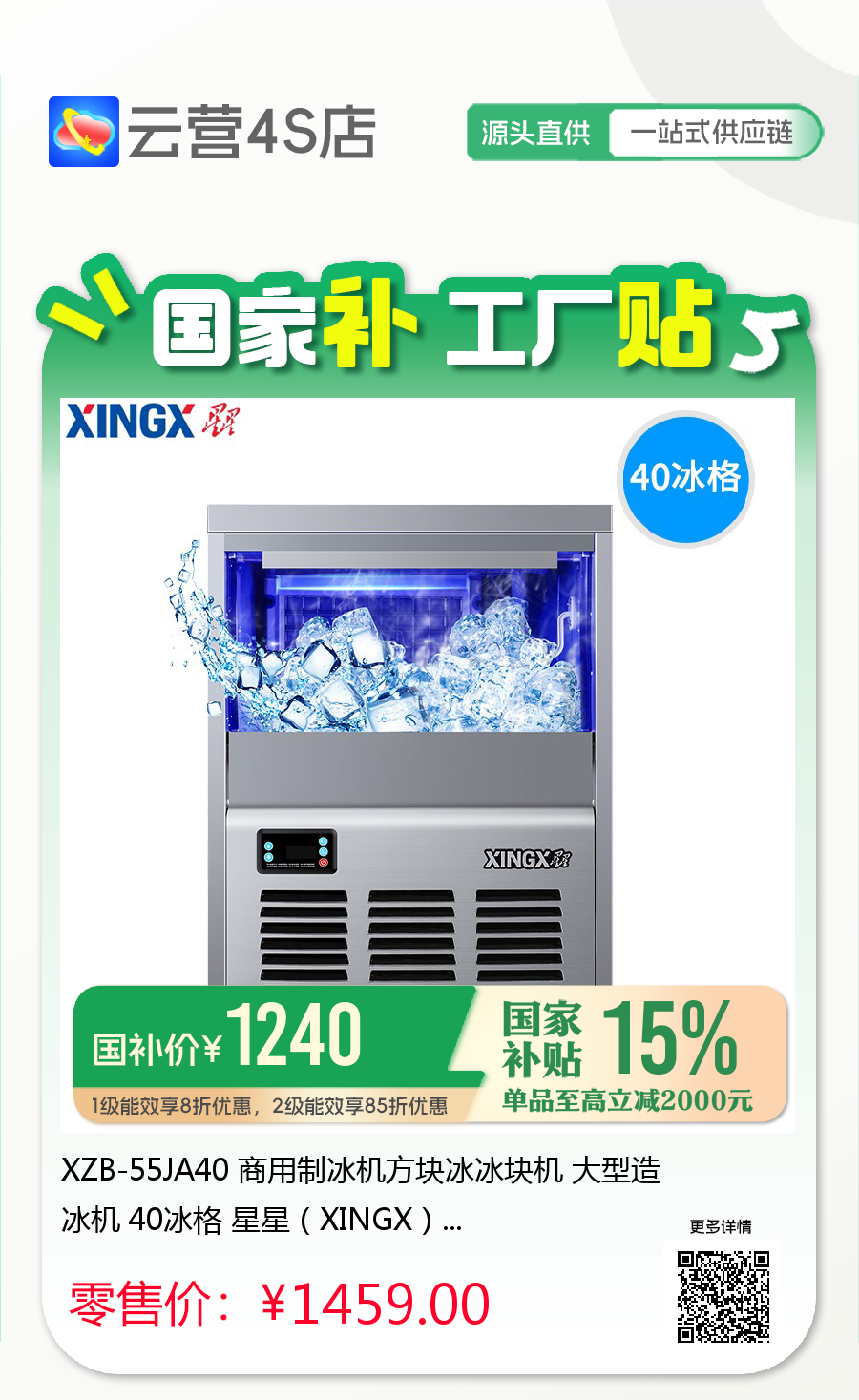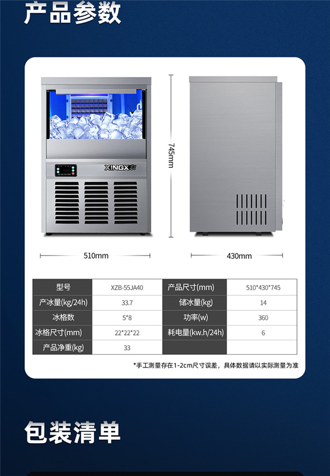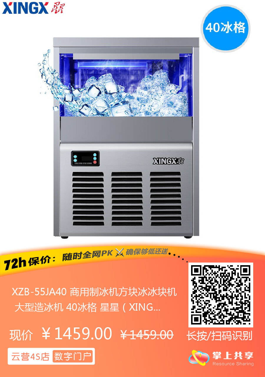 XZB-55JA40 商用制冰机方块冰冰块机 大型造冰机 40冰格 星星(XINGX)
